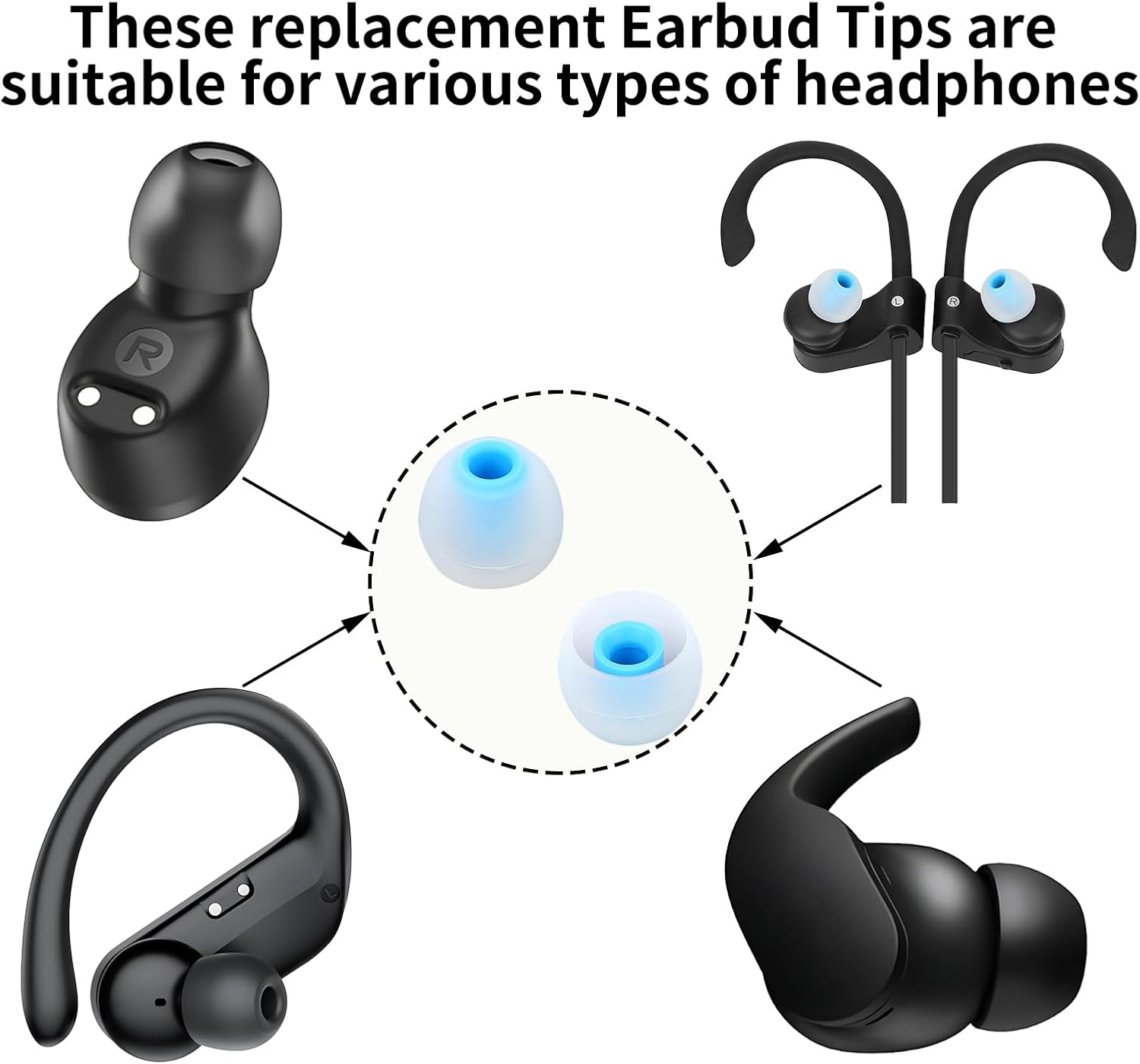 - These Replacement Earbud Tips compatible with all headphones with connection port diameter of 3.8mm-5.9mm.