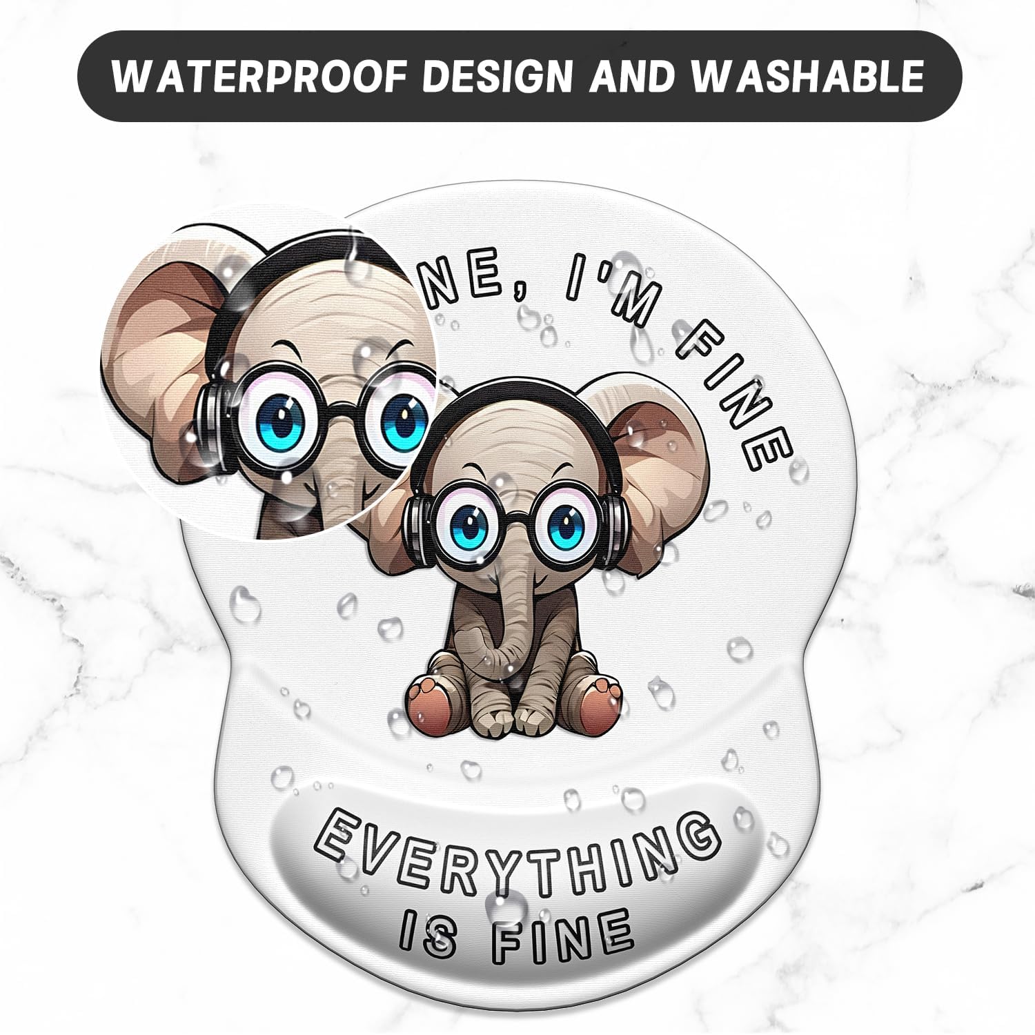 ITNRSIIET Ergonomic Mouse Pad with Gel Wrist Support Small Wrist Rest Smooth Surface Non-Slip PU Base Comfortable Office Supplies Pain Relief, 8.7 x 7.2 inches, Pretty Fine Elephant White