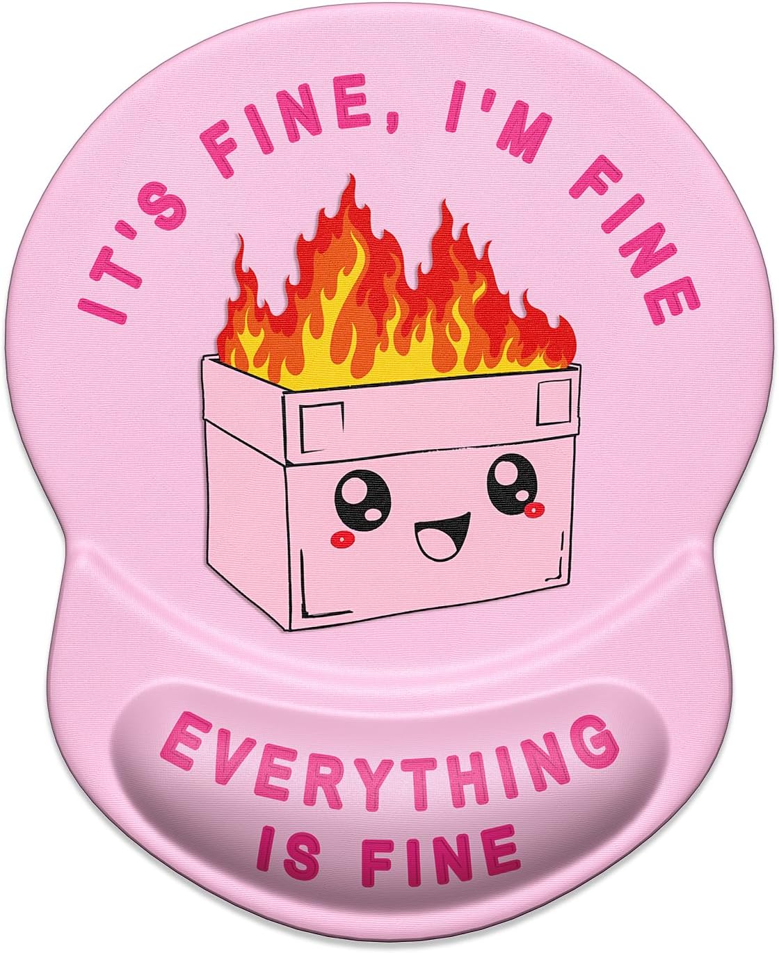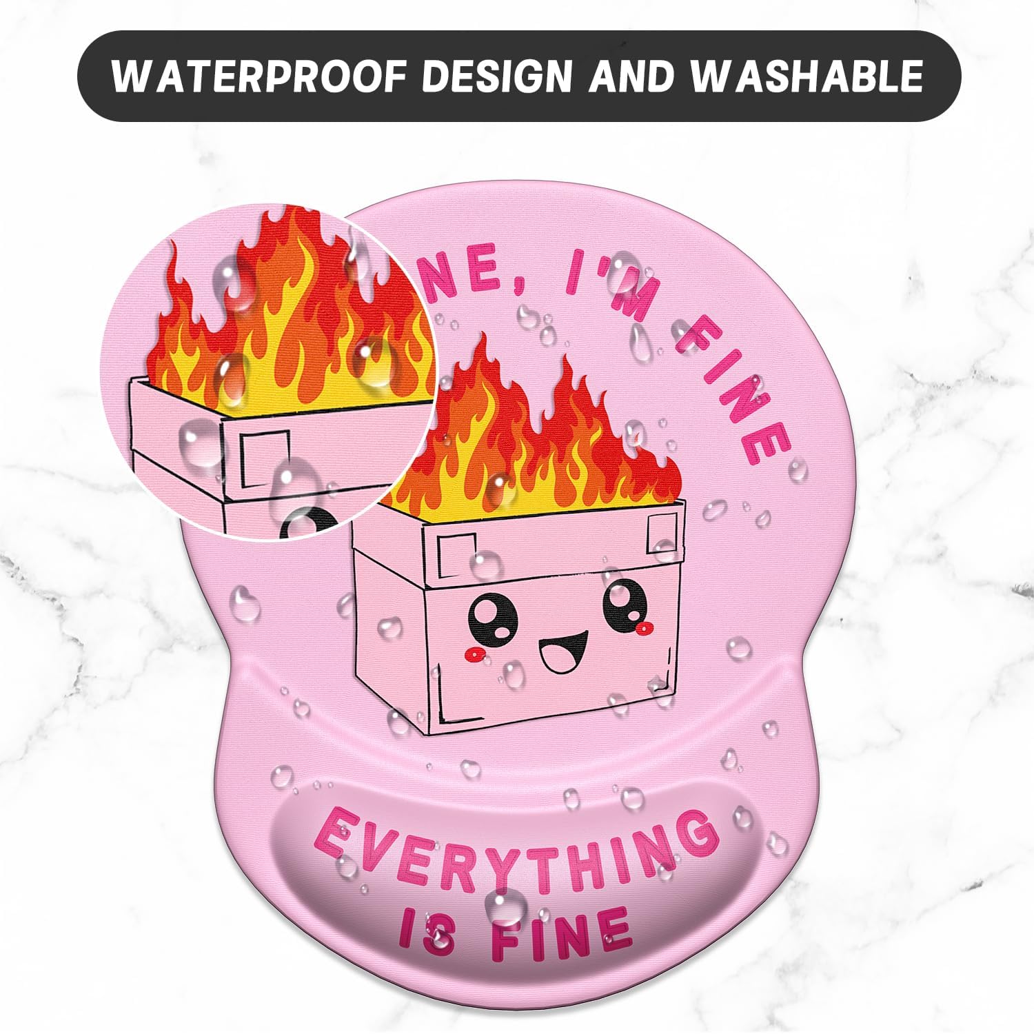 ITNRSIIET Ergonomic Mouse Pad with Gel Wrist Support Small Wrist Rest Smooth Surface Non-Slip PU Base Comfortable Office Supplies Pain Relief, 8.7 x 7.2 inches, Pink Cute Dumpster
