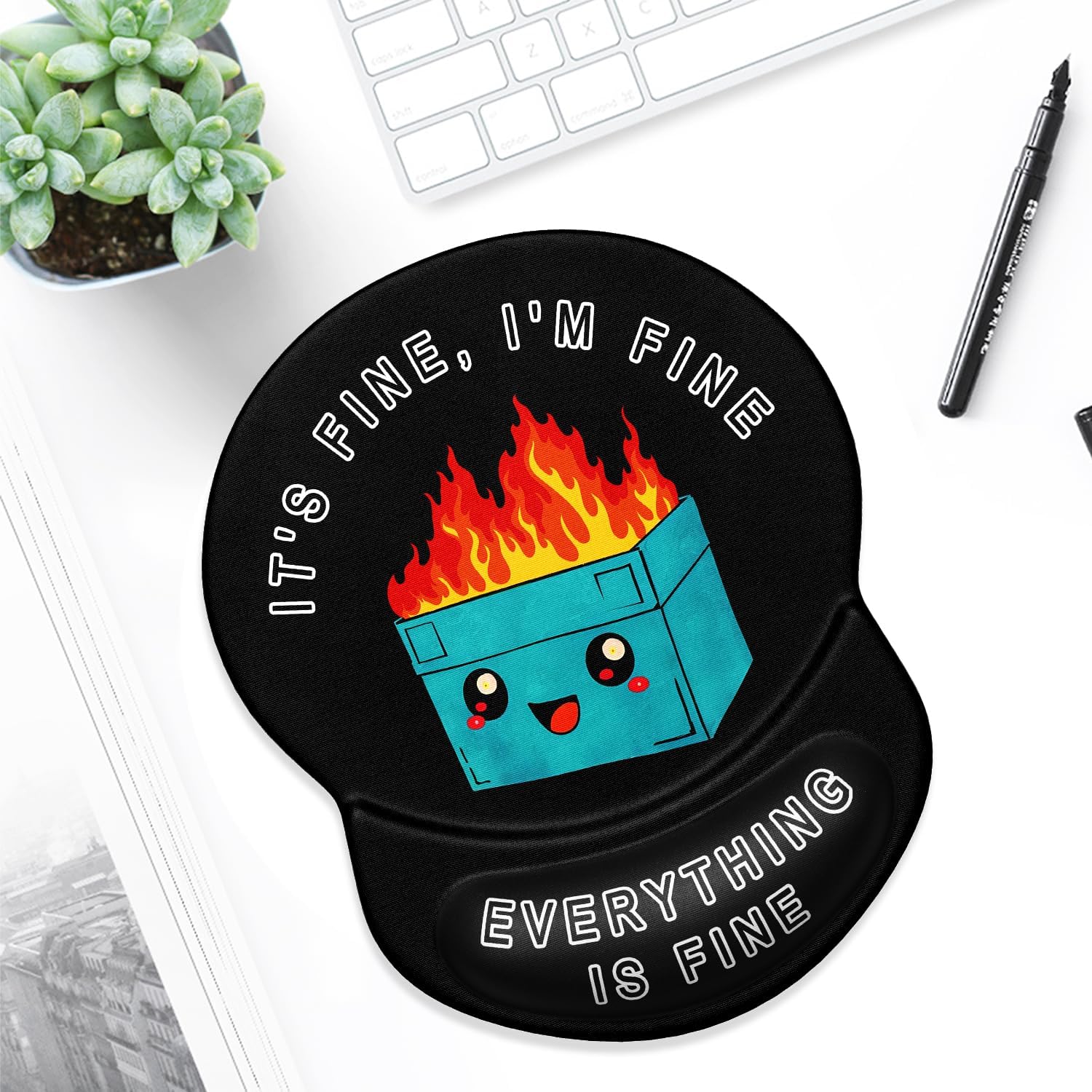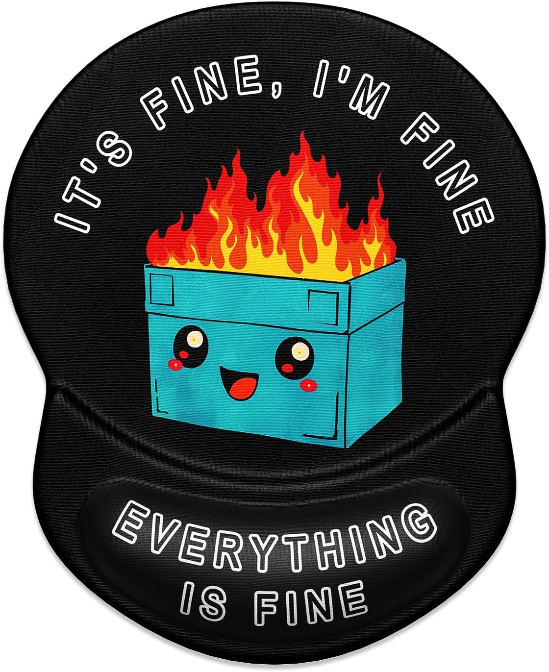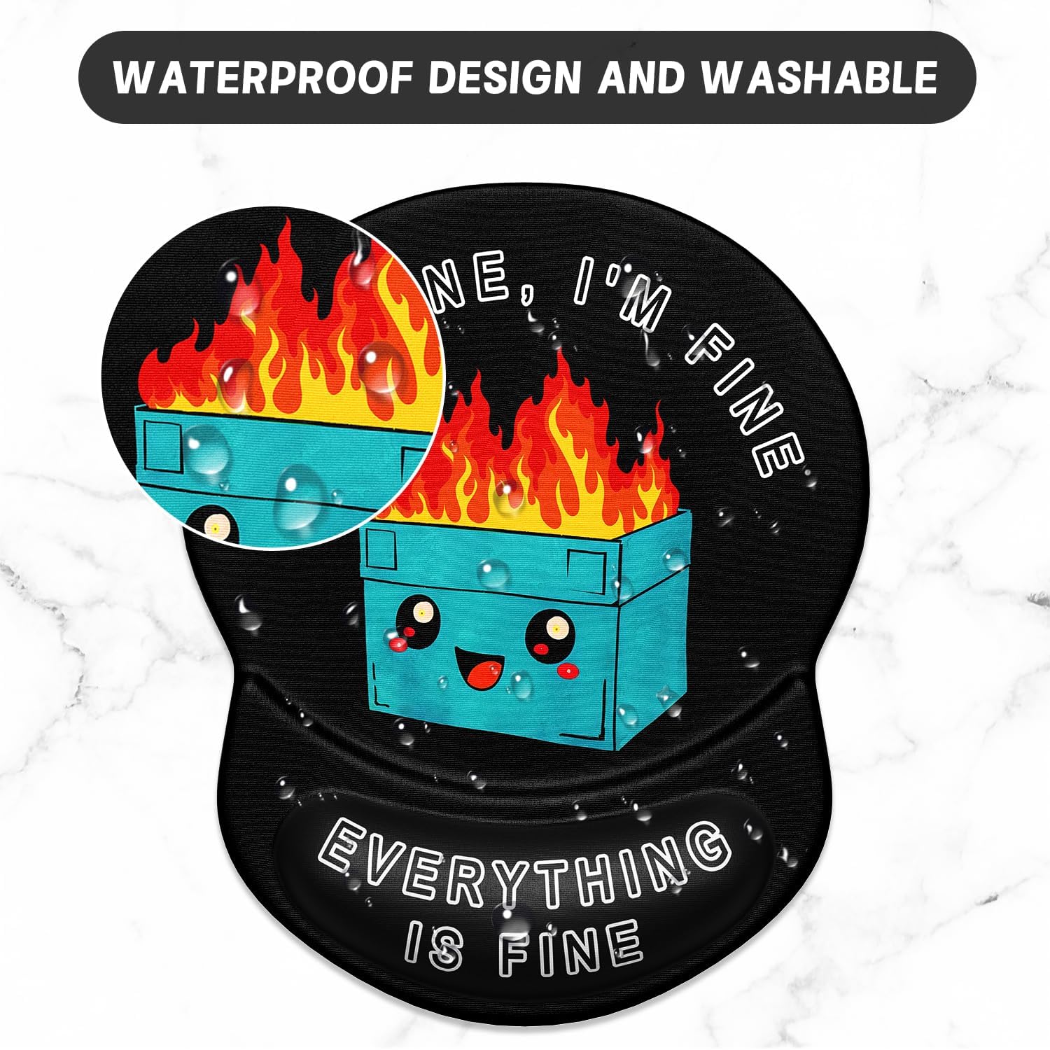 ITNRSIIET Ergonomic Mouse Pad with Gel Wrist Support Small Wrist Rest Smooth Surface Non-Slip PU Base Comfortable Office Supplies Pain Relief, 8.7 x 7.2 inches, Cute Dumpster