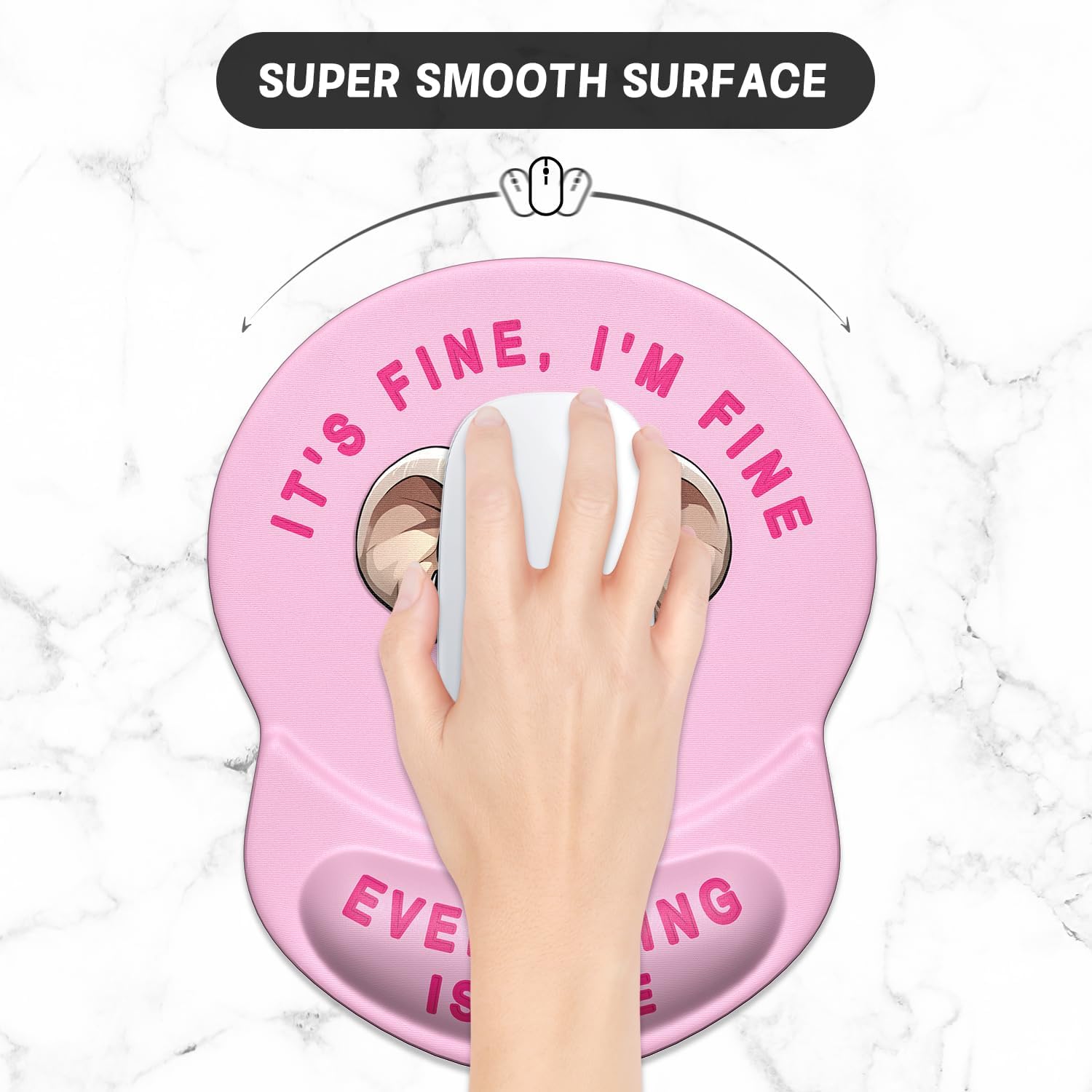 ITNRSIIET Ergonomic Mouse Pad with Gel Wrist Support Small Wrist Rest Smooth Surface Non-Slip PU Base Comfortable Office Supplies Pain Relief, 8.7 x 7.2 inches, Pink Pretty Elephant