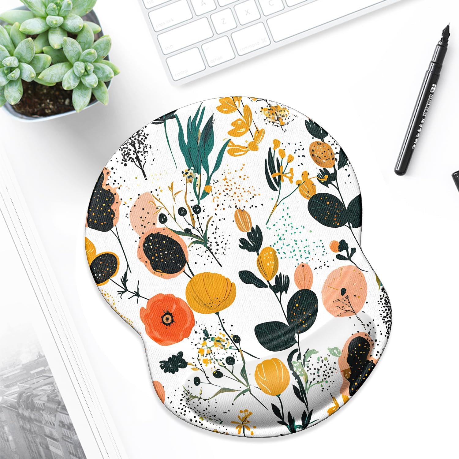 ITNRSIIET Ergonomic Mouse Pad with Gel Wrist Support Small Wrist Rest Smooth Surface Non-Slip PU Base Comfortable Office Supplies Pain Relief, 8.7 x 7.2 inches, Beautiful Flowers and Plants