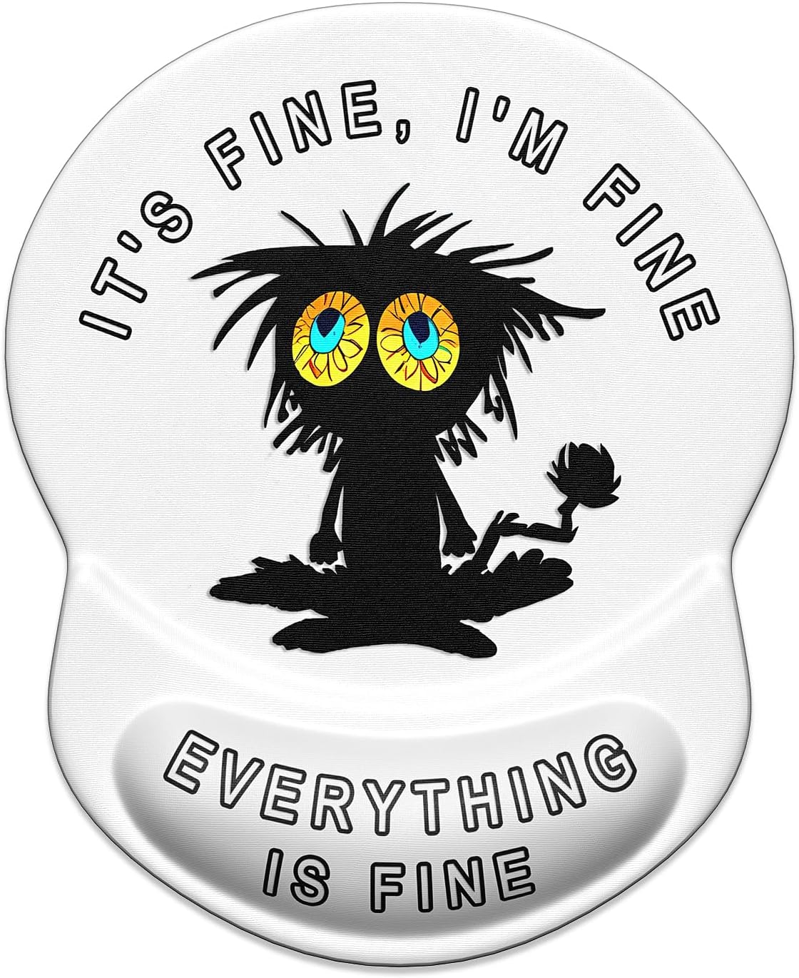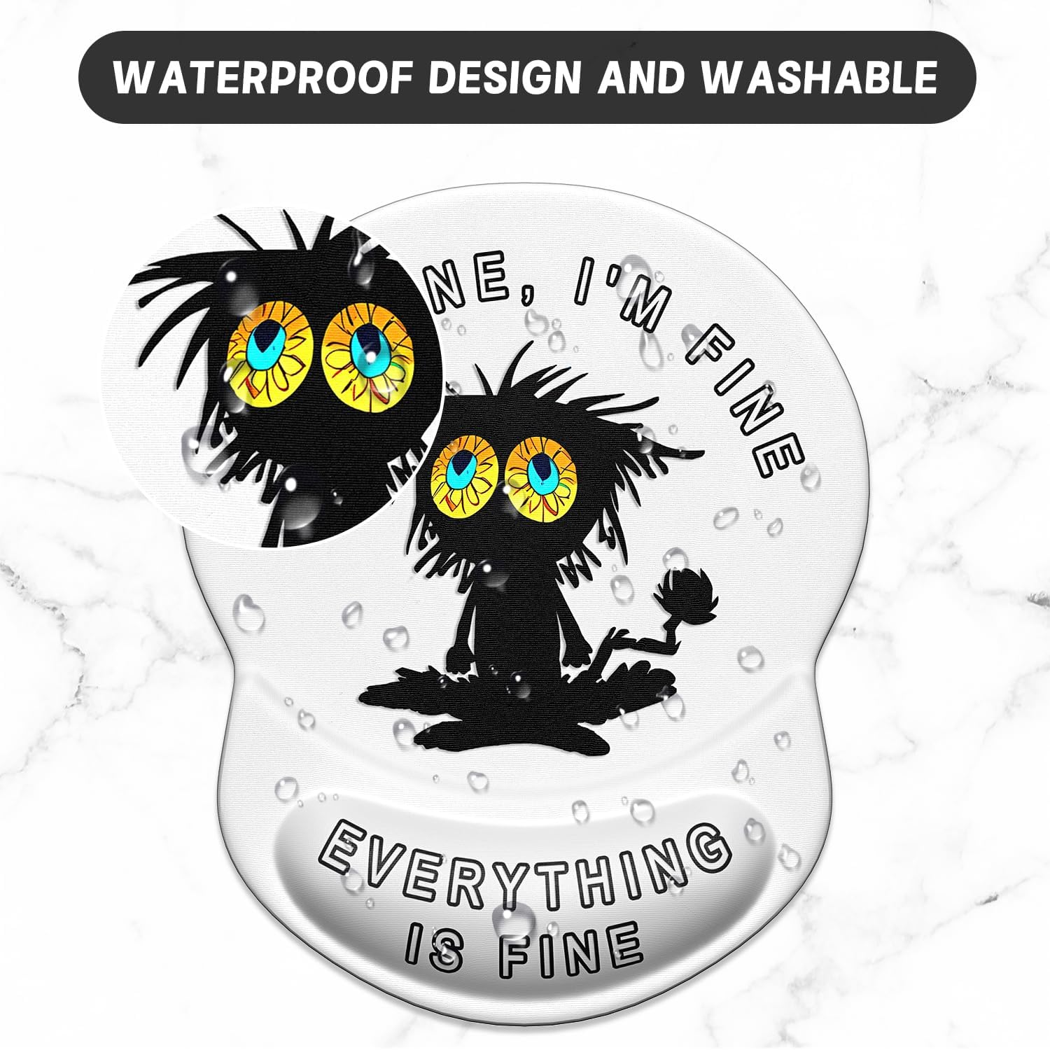 ITNRSIIET Ergonomic Mouse Pad with Gel Wrist Support Small Wrist Rest Smooth Surface Non-Slip PU Base Comfortable Office Supplies Pain Relief, 8.7 x 7.2 inches, Funny Black Cat