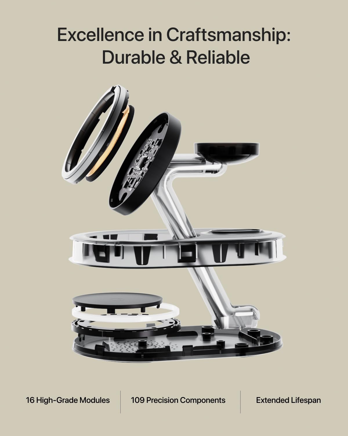 - ๐ฃ๐ผ๐๐ฒ๐ฟ๐ณ๐๐น ๐ ๐ฎ๐ด๐ป๐ฒ๐๐ถ๐ฐ ๐๐ผ๐น๐ฑ โ ๐ฆ๐ฒ๐ฐ๐๐ฟ๐ฒ & ๐ฃ๐ฟ๐ฒ๐ฐ๐ถ๐๐ฒ ๐๐น๐ถ๐ด๐ป๐บ๐ฒ๐ป๐:This charging station features advanced N52-grade magnets that ensure your devices remain securely locked in place, whether you are cooking in the kitchen, working from home, or enjoying family time in the living room. The strong magnetic connection eliminates the need to constantly adjust your phone or worry about accidental falls, so you can enjoy uninterrupted charging and peace of mind every time.