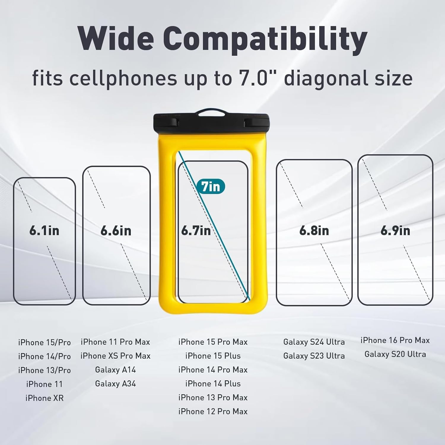 Floatable Soap Bubble Waterproof Phone Pouch/Case with Crossbody Lanyard for iPhone 16 Pro Max/15 Pro/14/13/12, IP68 Cellphone Dry Bag Beach Cruise Ship Essentials, 1 Pack-Yellow-7″