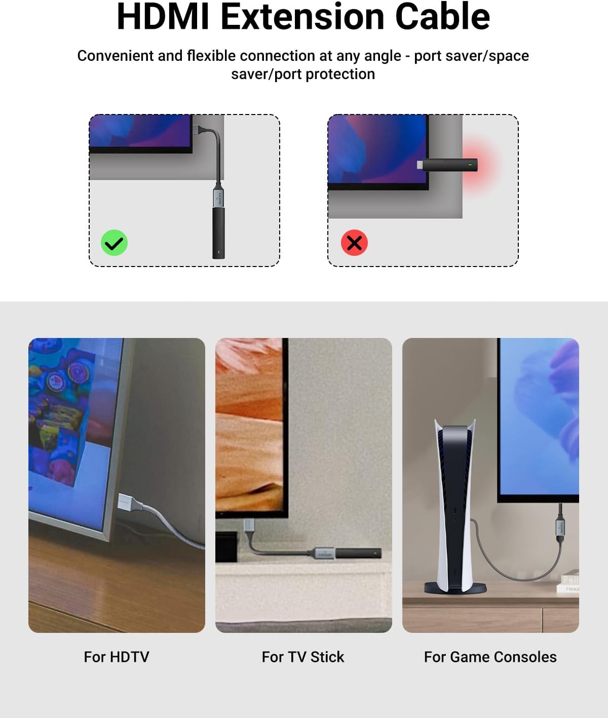 8K Short HDMI Extender Cable 0.6 FT Ideal for Tight Spaces, HDMI Extension Male to Female Adapter, Compatible with Roku TV Stick, HDTV, Game Console, Laptop (2 Pack, 0.6FT)