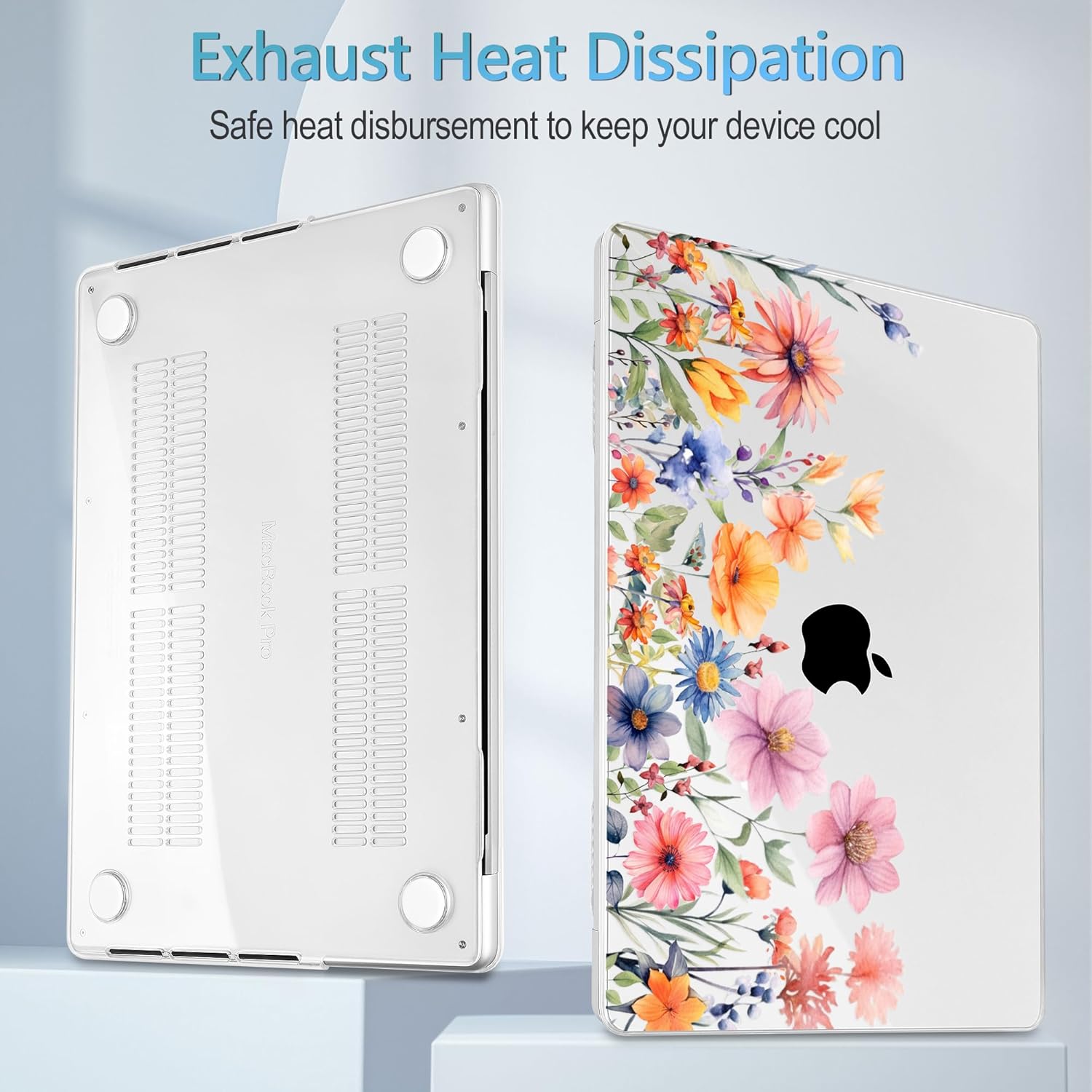 Mektron Case for MacBook Pro 16" M4 A3403 A3186 M3 A2991 M2 A2780 M1 A2485 (2021/2023/2024) Pro/Max with Touch ID, Hard Shell Plastic Laptop Cover Keyboard Cover Screen Protector, Floral P165