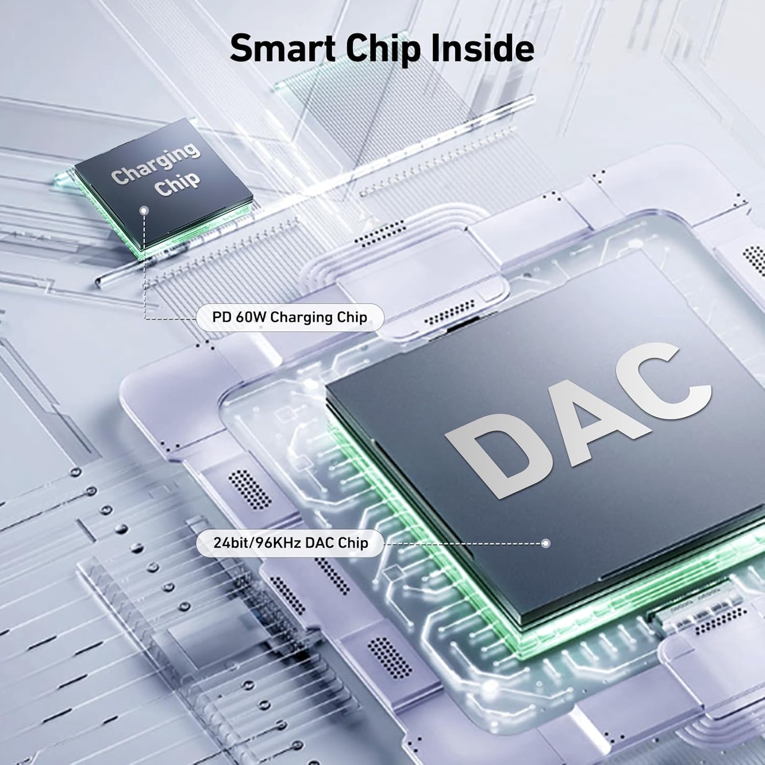 - 【No Battery Worries】 With 60W fast charging cord, you don't need worry any longer about phone battery. This compact usb-c to aux adapter enable you to listen to music and answer phone call with your headphone and support wire control function as well.