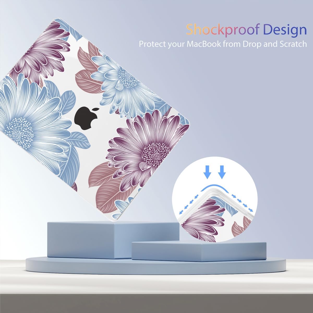 Teryeefi for MacBook Air M4 M3 M2 13.6 inch Case 2025 2024-2022,Fit Model A3240 A3113 A2681, Laptop Hard Shell Cases with Keyboard Cover & Screen Protector for MacBook Air 13.6", W-Flowers