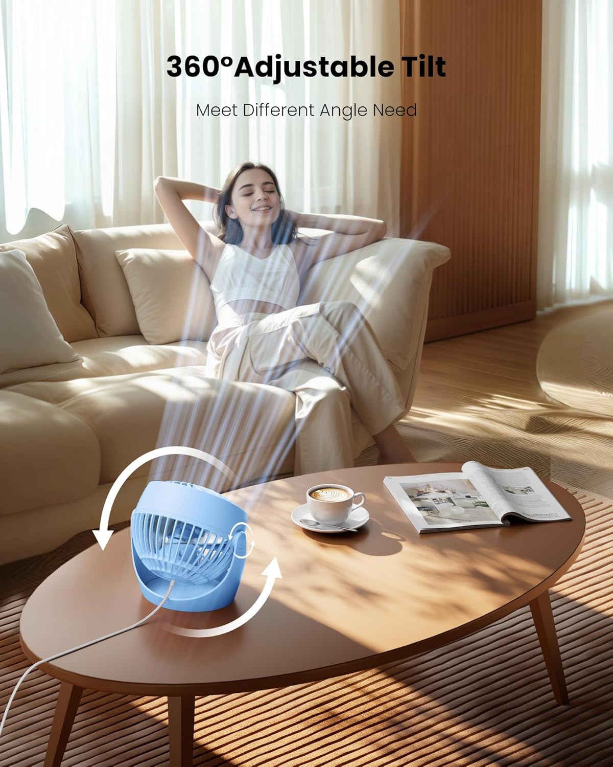 Gaiatop Desk Fan, 5-Inch Portable Electric Table Desktop Air Circulator Fans, Small but Powerful with 3 Speed 360° Adjustable Tilt for Cooling Home Dorm Office Bedroom Bathroom Kitchen, Blue