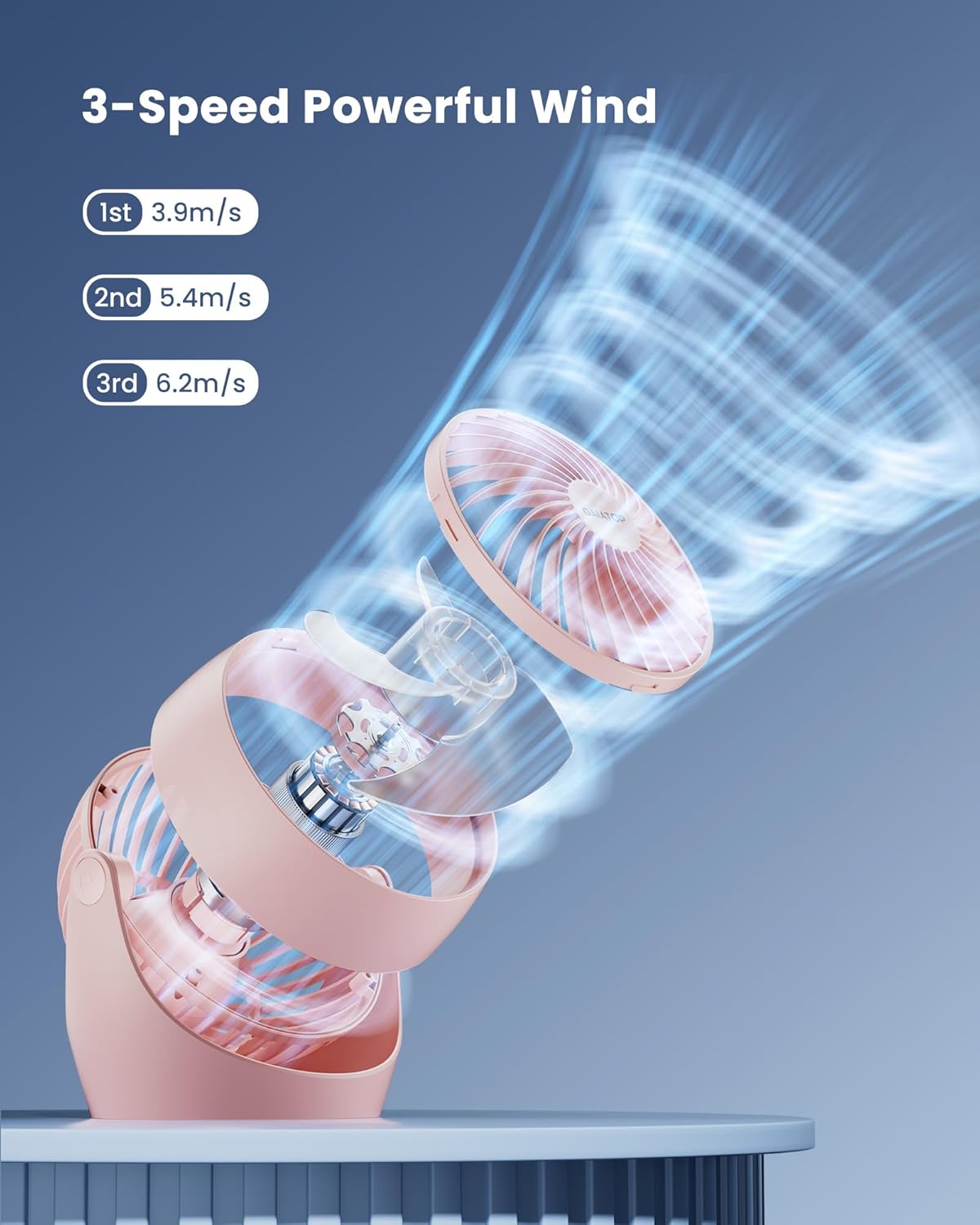 Gaiatop Desk Fan, 5-Inch Portable Electric Table Desktop Air Circulator Fans, Small but Powerful with 3 Speed 360° Adjustable Tilt for Cooling Home Dorm Office Bedroom Bathroom Kitchen, Pink