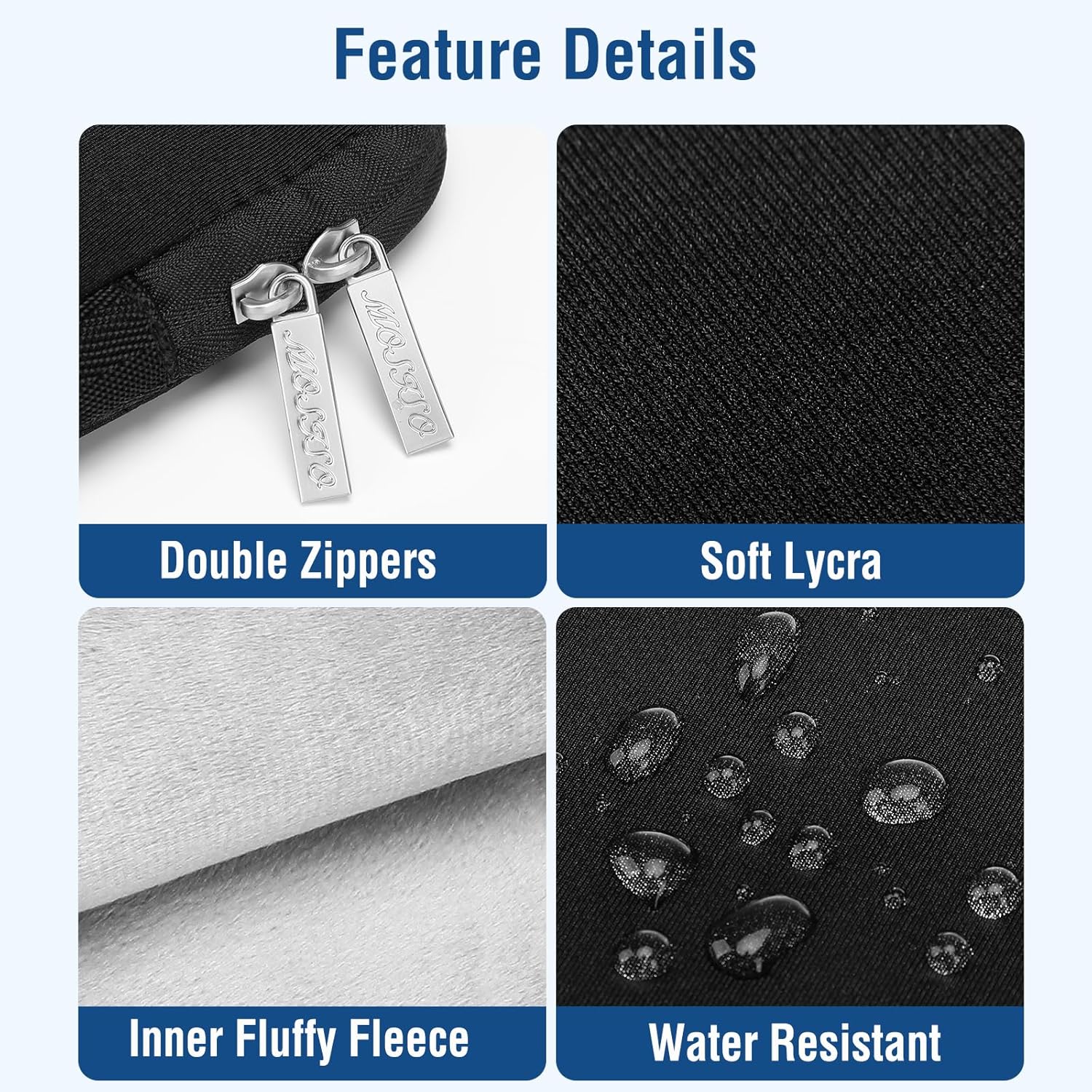 - Features a neoprene foam padding layer and fluffy fleece fabric lining for bump and shock absorption and protection of your computer from accidental scratches.