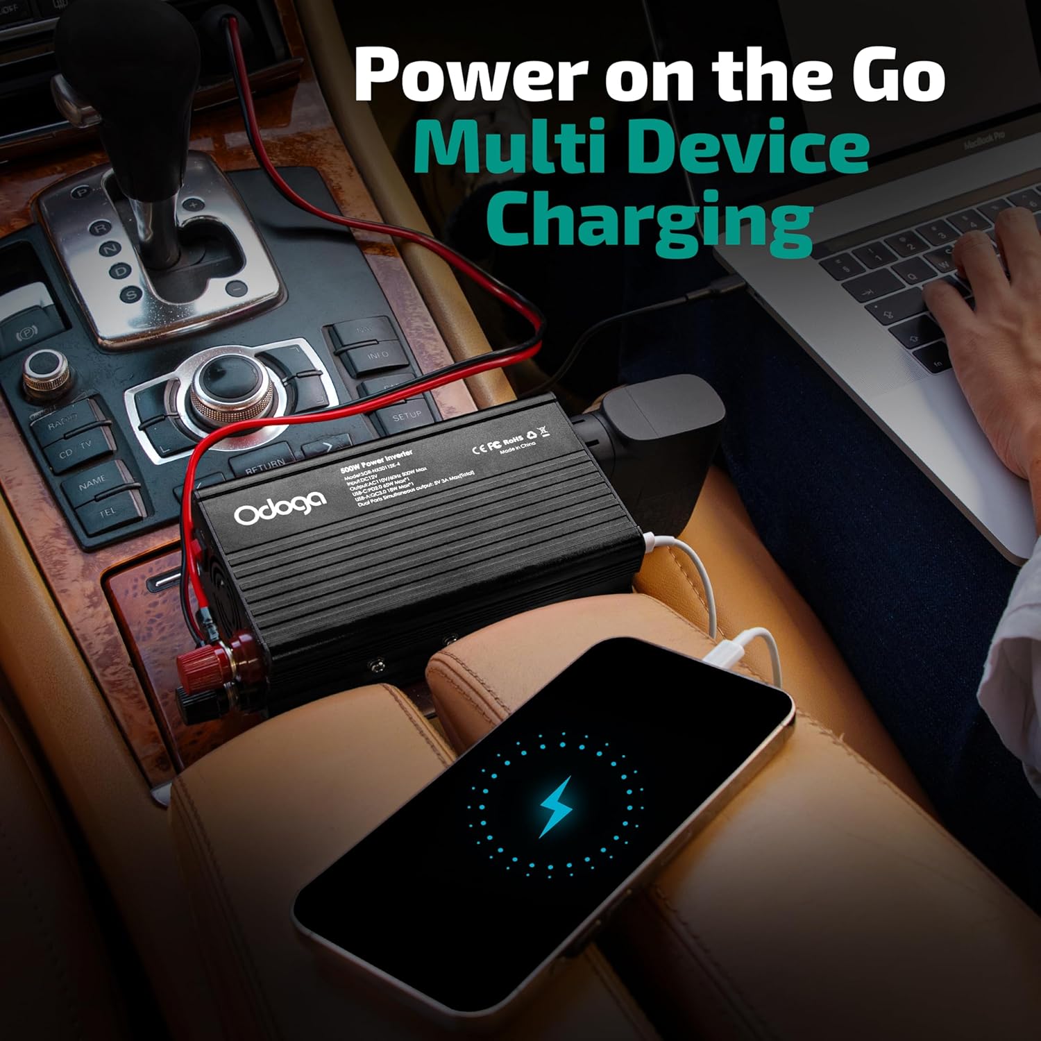 500W Car Power Inverter 12v to 110v – Car Adapter for Plug Outlet, DC to AC Converter, USB/USB-C Fast Charger for Laptop, Phone, Dual AC – for Vehicle, Pickup Truck, Roadtrip, Camping by Odoga