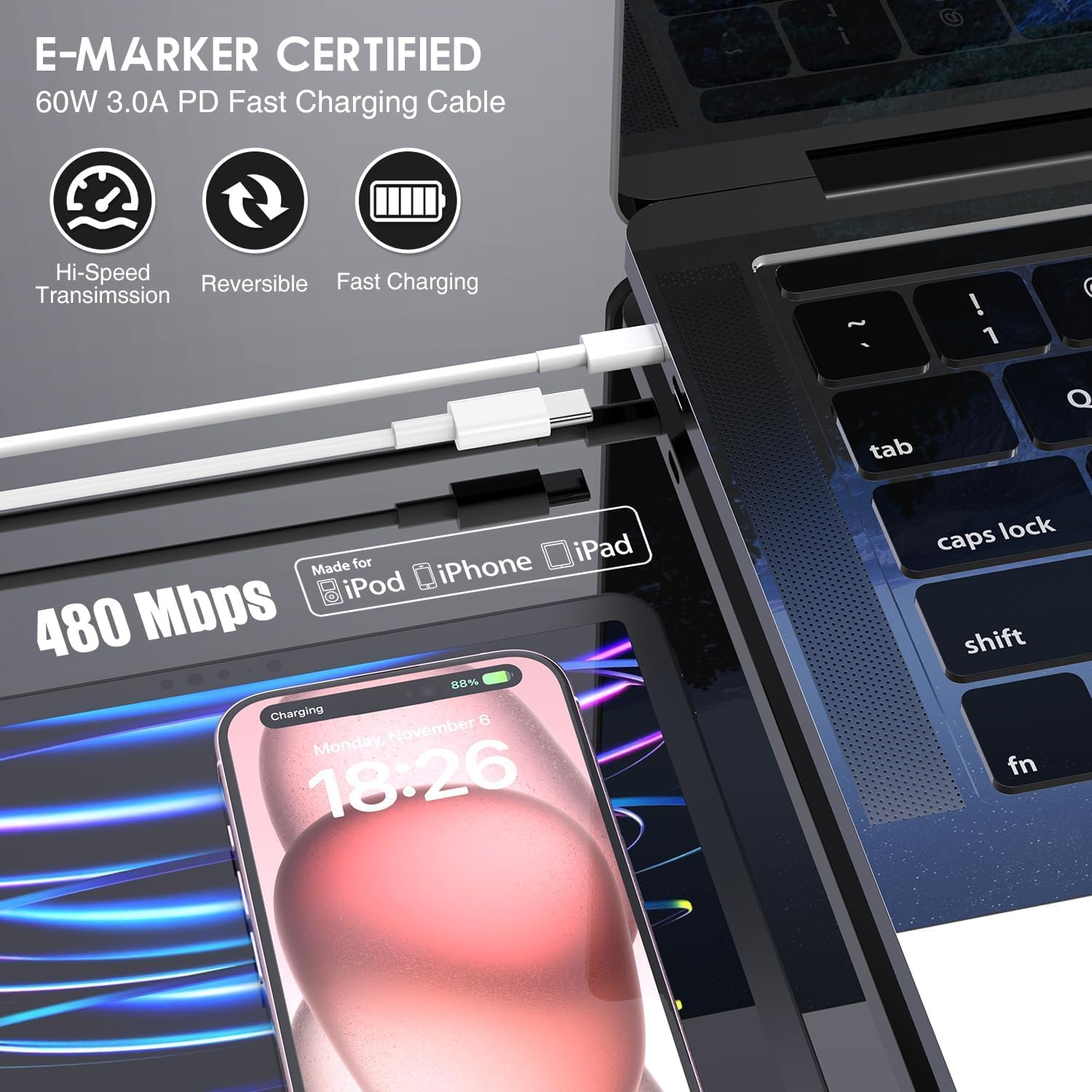 - 【Safety Efficient Fast Charging】 These iPhone 16/iPhone 15 pro max chargers for iPhone owns bulit-in multi-protection system, avoiding from over-voltage, over-charge, over-heat, etc. The smart chip cable matches the current required by the device automatically, charges your iPhone/iPad device fast, safely and steadily. They are convenient for usage while charging and sync at home/office/travel in bed, hotel rooms, and more.
