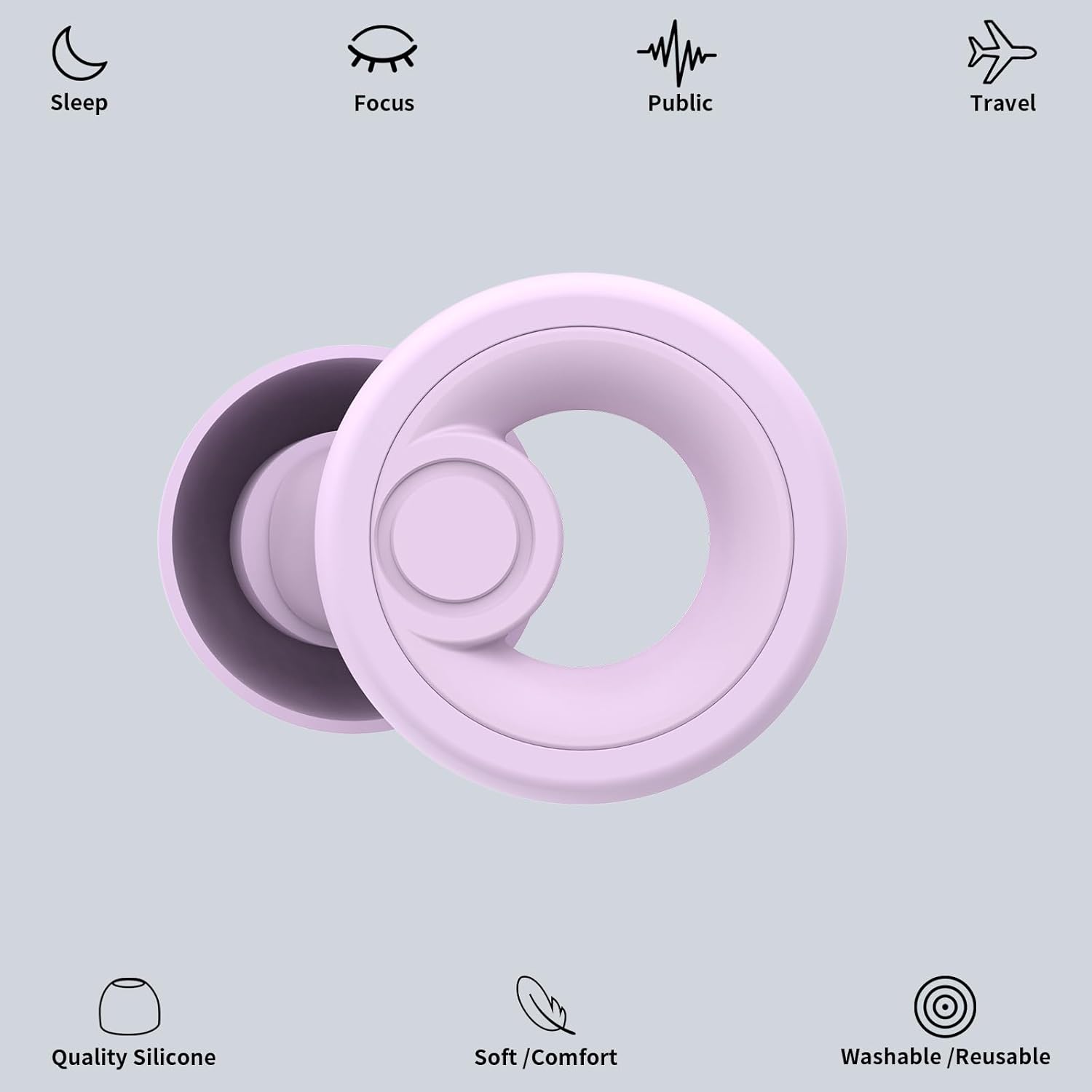 Ear Plugs for Noise Reduction, Reusable Concert Earplugs Hearing Protection, Soft Silicone Ear Plugs for Sleeping, Focus, Noise Sensitivity - Ear Tips in XS/S/M/L - Purple