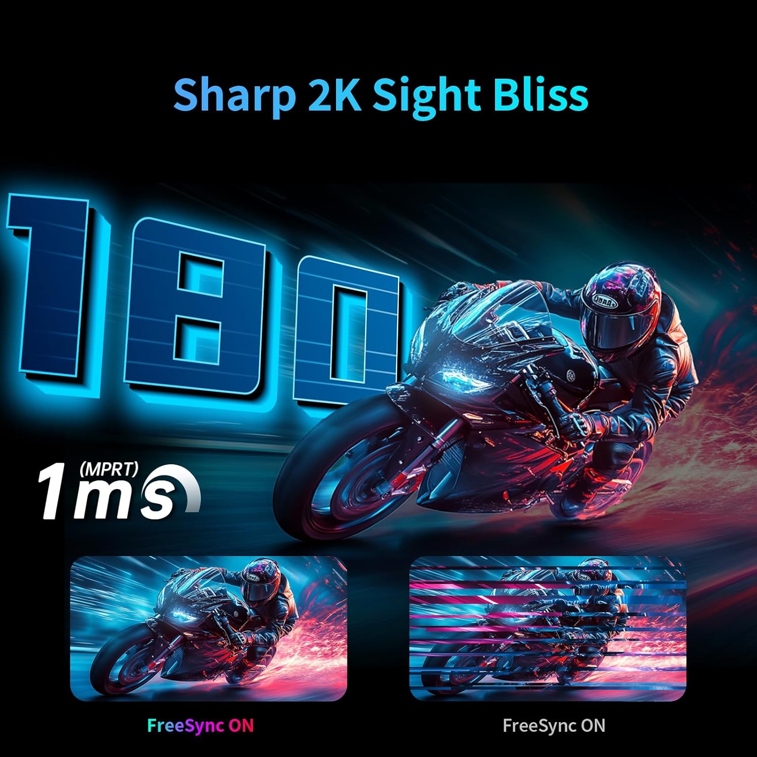 - [180Hz & 1ms for Gamers]Elevate your gaming experience with a blazing 180 Hz gaming monitor refresh rate. The ultra-fast 1ms response time reduces motion blur, delivering a smooth and responsive gaming experience. This 2K monitor 144Hz supports Adaptive Sync, compatible with both FreeSync Premium and G-SYNC.