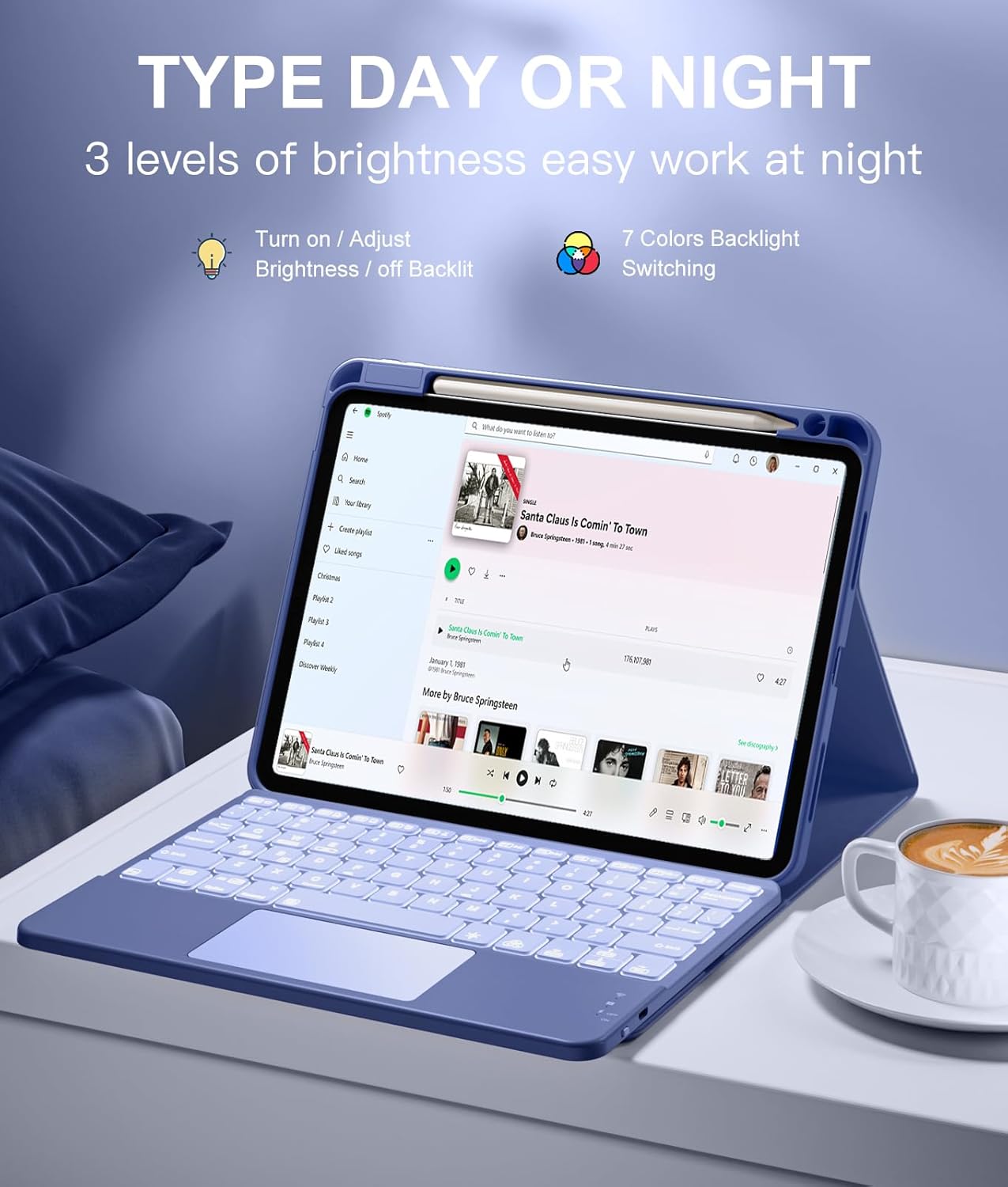 Compatible with iPad Air 11 Inch & Air 5th/ Air 4th Generation Case with Keyboard - Multi-Touch Trackpad, 7-Color Backlit, Detachable Folio Cover for Air 11-inch M3/M2 (2025/2024) (Blue)