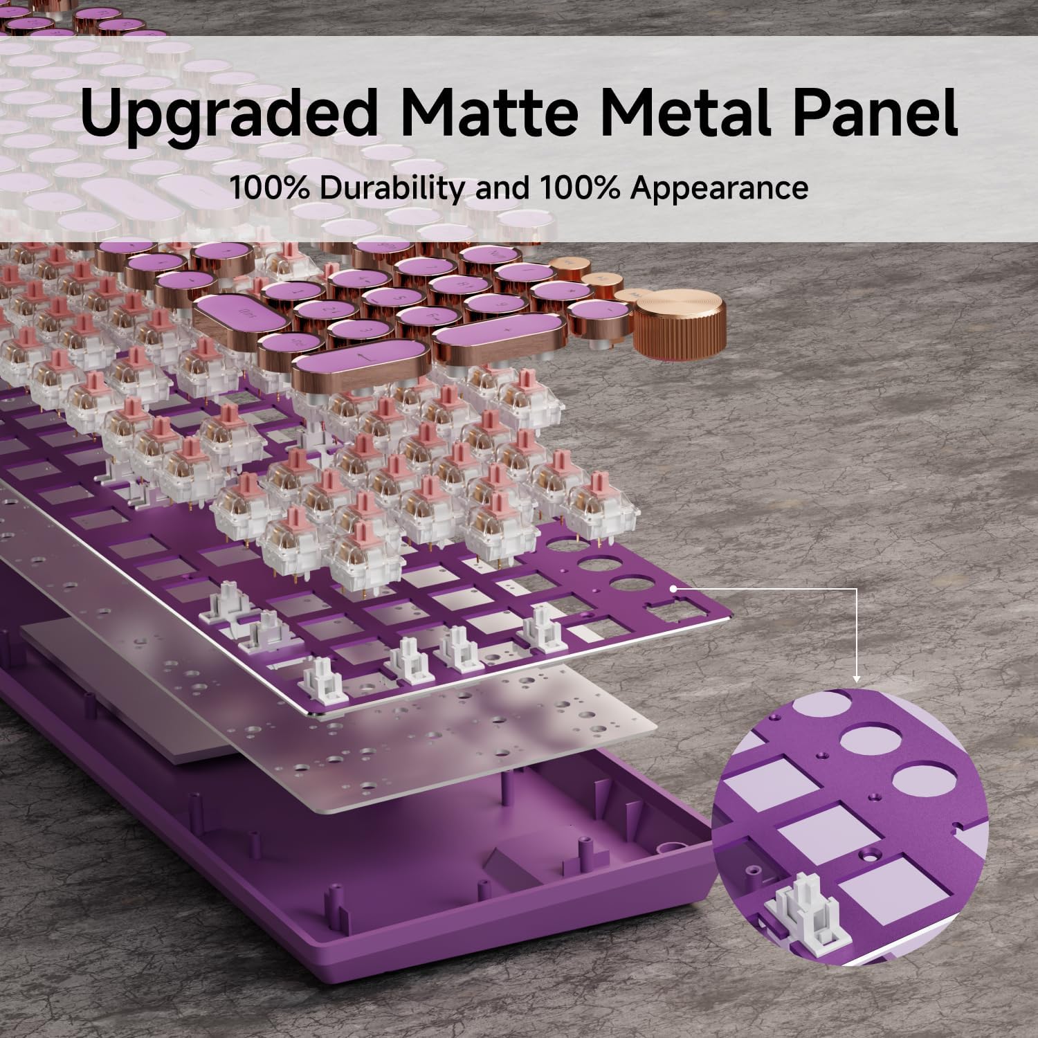 - 【Metal Panel and Electroplated Punk Keycaps】:The typewriter gaming keyboard panel is made of top-grade aluminium alloy, with a metallic matte texture, sturdy and robust enough to protect it from scratch. The floating keycaps are carefully crafted using metal plating technology, with a unique monochromatic light that instantly makes your keyboard look stunning, and enhances the feeling of the wired backlit keyboard.