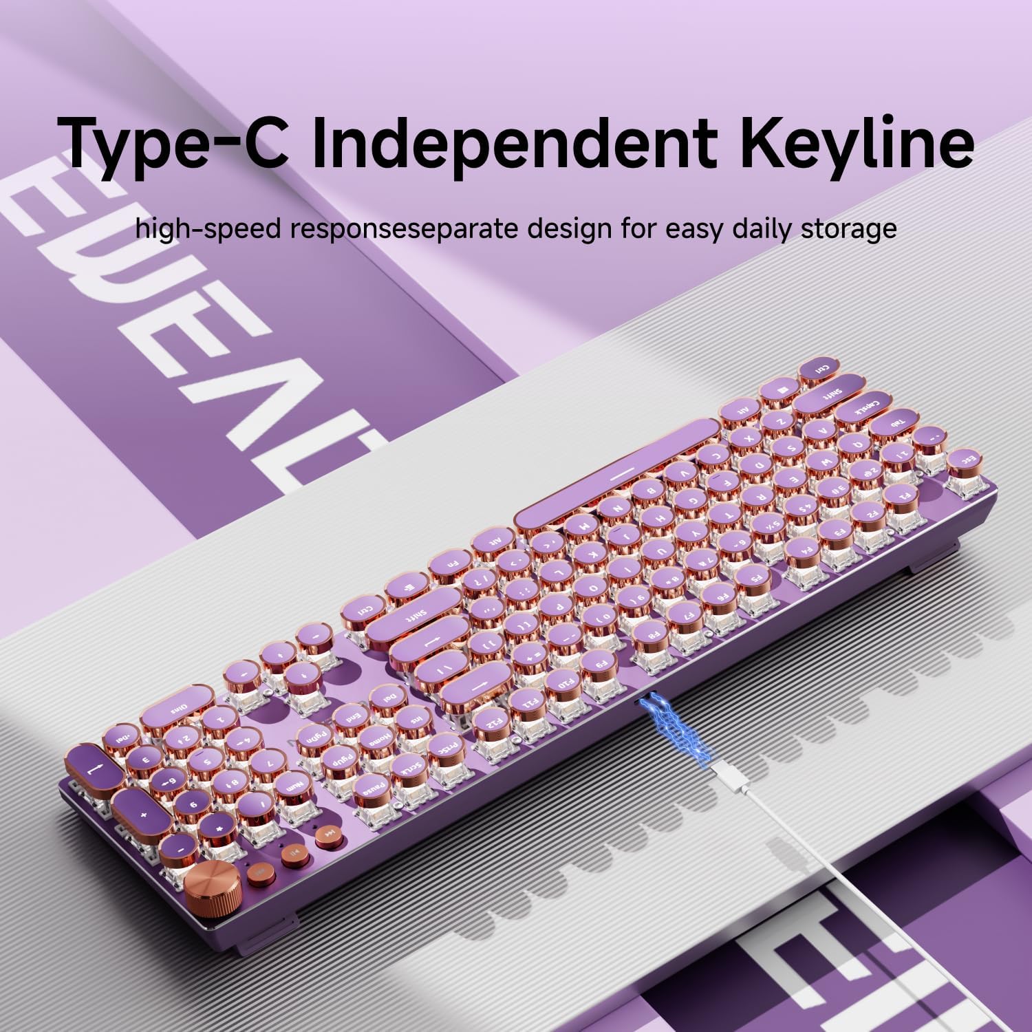 EWEADN Typewriter Style Mechanical Gaming Keyboard, Wired Mechanical Keyboards,104 Keys Backlit LED Keyboards, Media Control Knob, Wired Computer Keyboard Pink Switch for Windows/Mac/PC-Purple