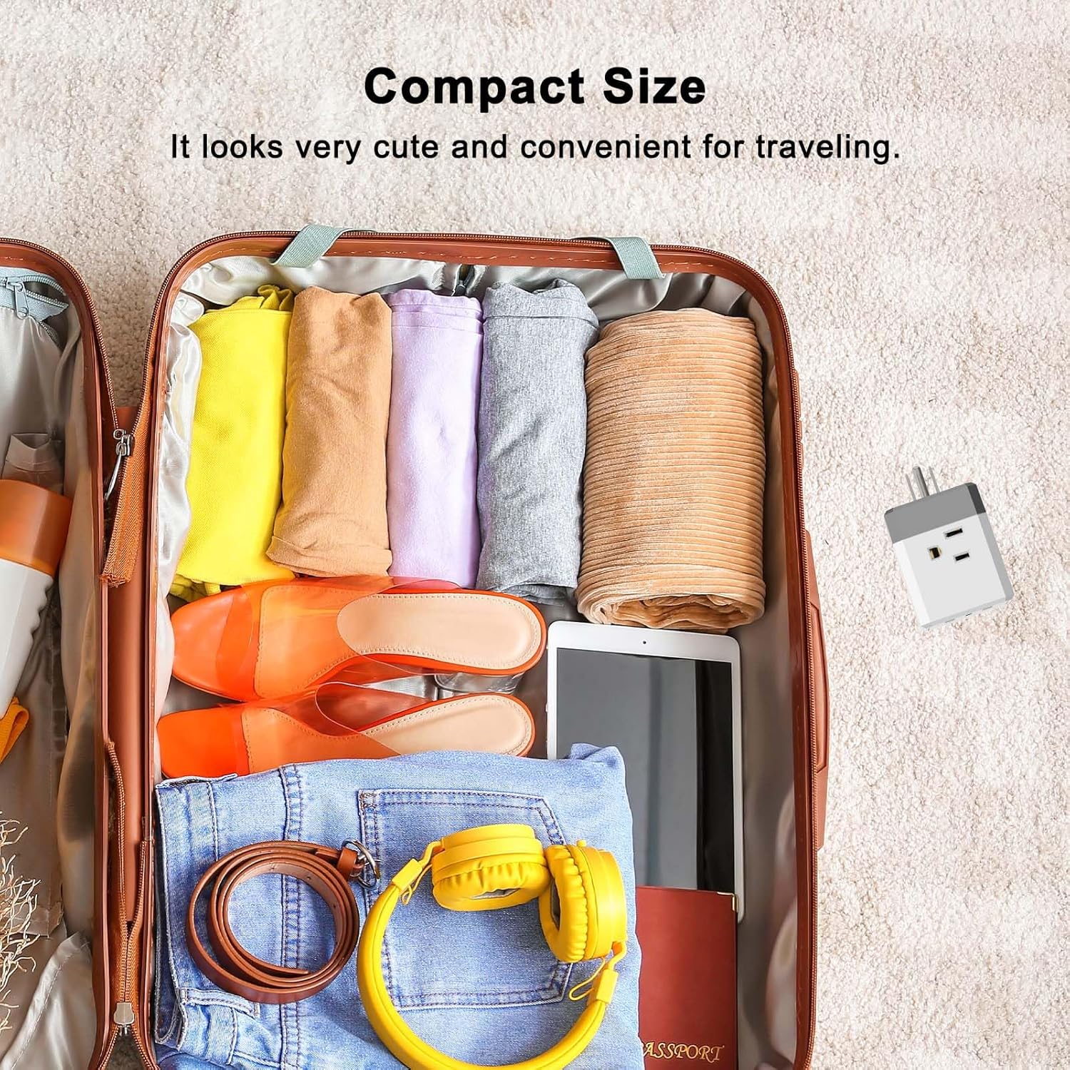 - Portable Travel Adapter: Compact size plug-in adapter only occupies 1 wall socket which is a nice outlet splitter; ideal for smart phones, tablets, laptop, kitchen appliances and other electronic accessories. 4 side outlets and USB ports allow you to charge up to 6 devices simultaneously; ideal for power adapters and bulky plugs.