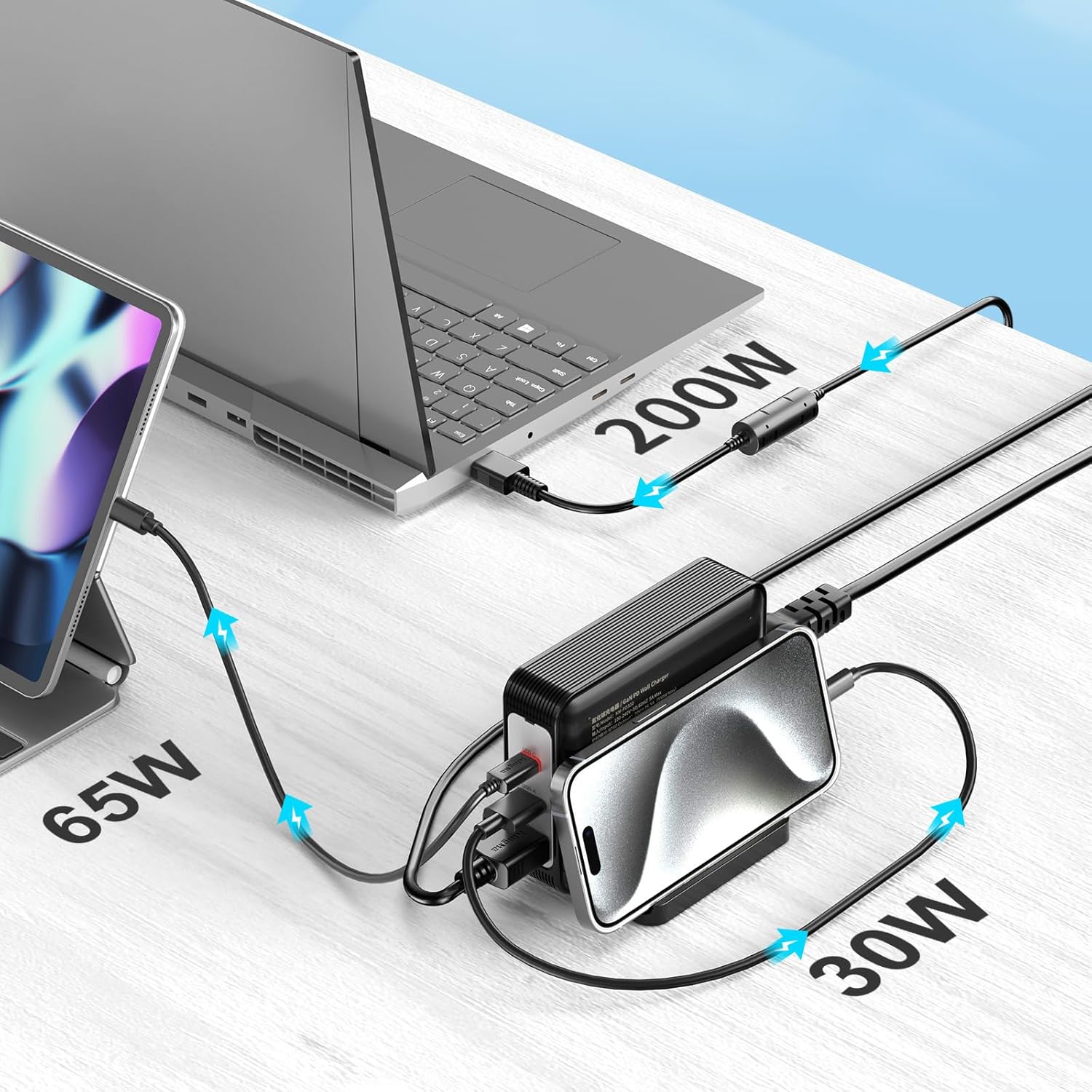 - 【Latest GAN Chip Technology】 GaN technology not only reduces the size and weight of the laptop charger, but also generates less heat, reduces power consumption effectively and improves charging efficiency greatly, makes charging safer and more convenient.