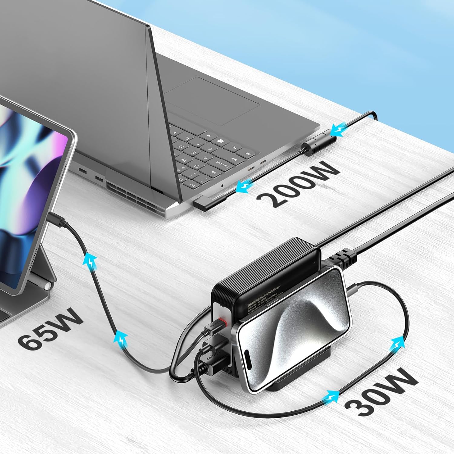 - 【Latest GAN Chip Technology】 GaN technology not only reduces the size and weight of the laptop charger, but also generates less heat, reduces power consumption effectively and improves charging efficiency greatly, makes charging safer and more convenient.