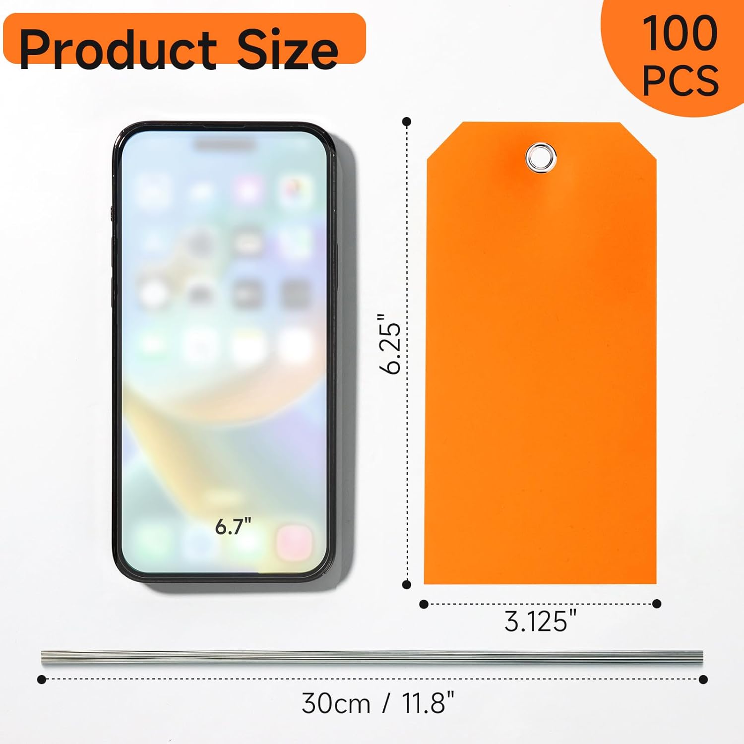 AmazonBasics 100pc Plastic Shipping Tags - BrieFcase Wires, Blank with Reinforcement Hole, Orange, 6 1/4" x 3 1/8" Durable Waterproof Hang Tags