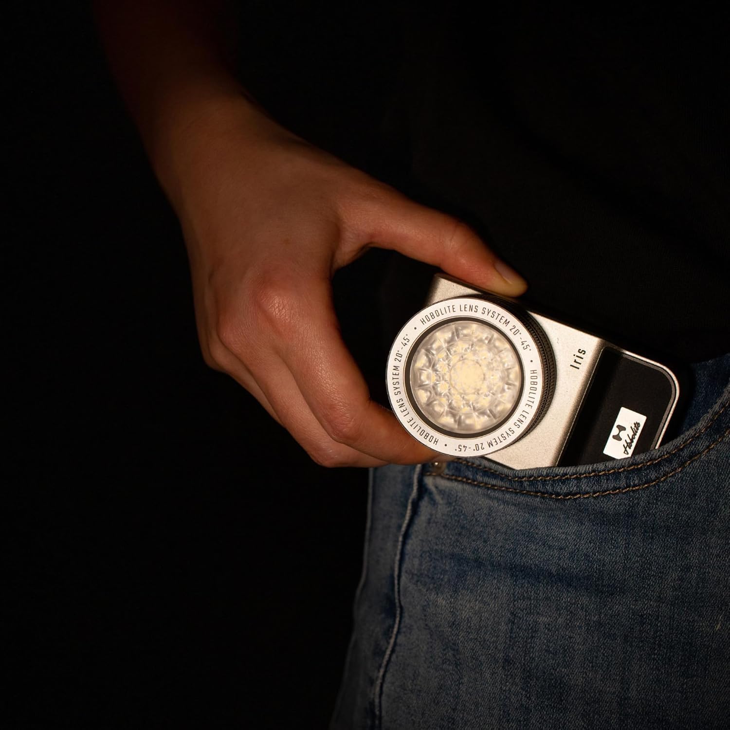 - Compact & Creative: The Hobolite Iris is a 5W portable continuous LED lighting kit for content creators, photographers, videographers, live streaming, and more. Its vintage point-and-shoot camera design and colored gel filters elevate the creative process. Our Iris Light Body:3.4” x 2.0” x 1.2”; Net Weight:0.35lbs