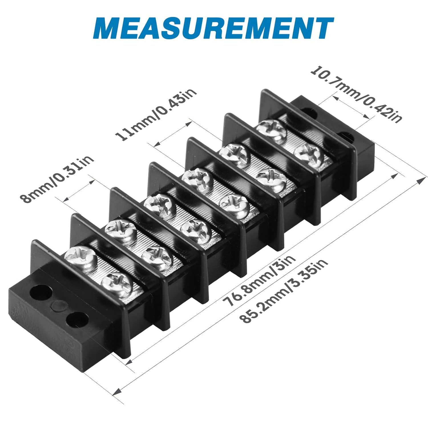 GLOSO Terminal Blocks Double Row Stainless 11 mm Pitch TBC, Marine Grade, 12-22 AWG Cu, 25A/300V - 1 Pack, 6 Poles