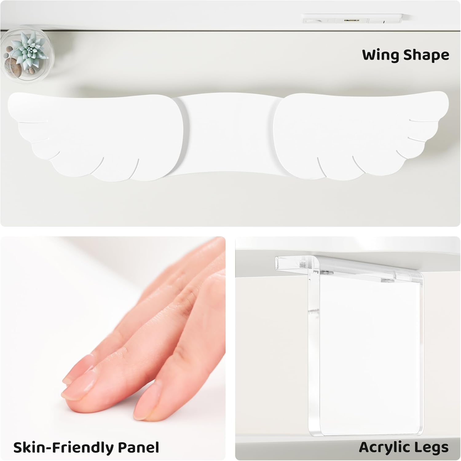 - 【Easy to Install】(1)Tighten the screws on the left and right wing-shaped shelves.(2)Tighten the screws on both sides of the middle shelf.Notice:Middle wing board installs short feet 81mm, 2 wing boards install long feet 82.5mm, drawer has been pre-installed.