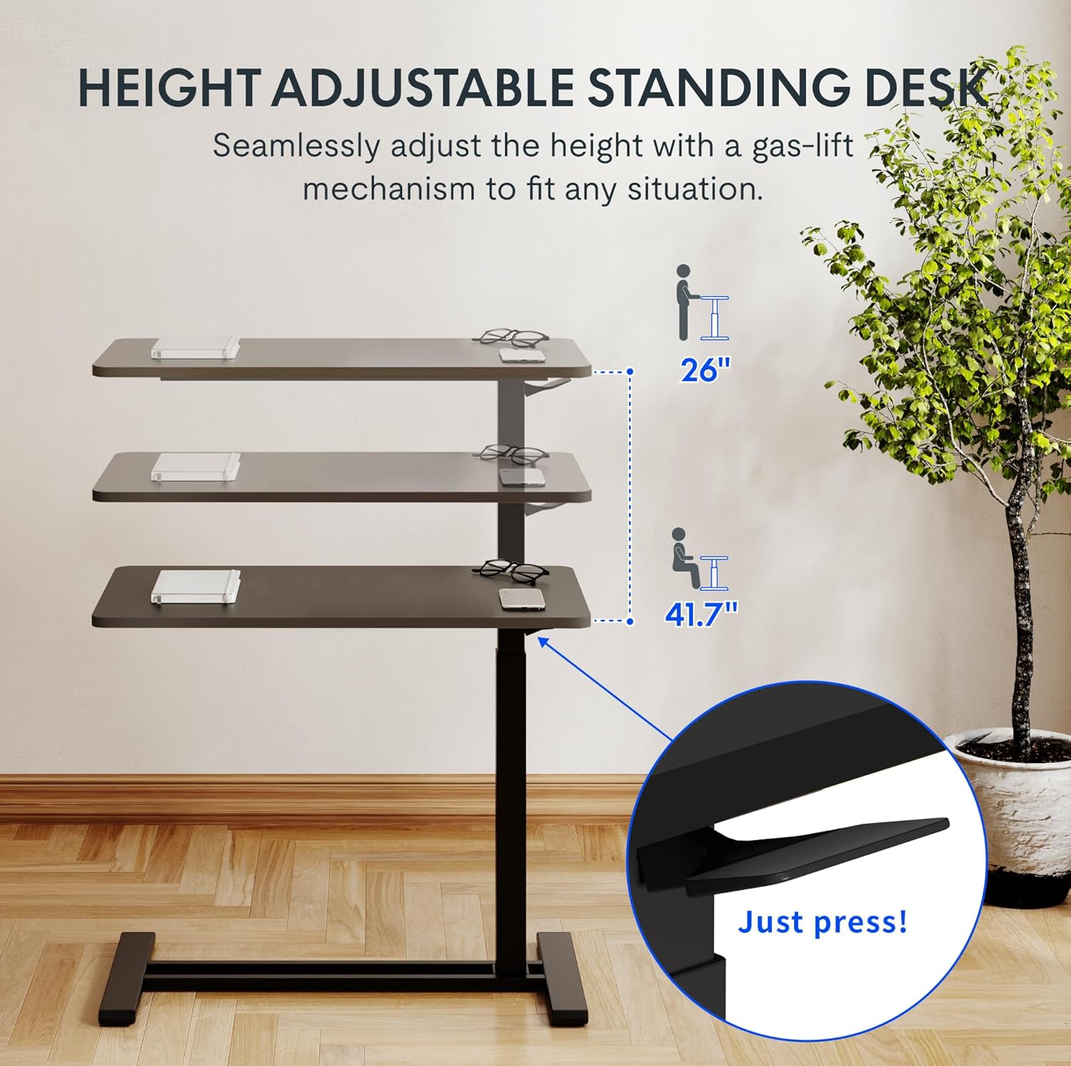 - One-Touch Height Adjustment with Gas Spring Lift (26"-41.7"):Effortlessly customize your C-Shaped Table from bedside to standing desk heights using the pneumatic lift system. The gas spring mechanism enables smooth one-handed operation – perfect as an overbed table for patients, an adjustable laptop desk, or a sofa-side snack table – all without bending or straining.