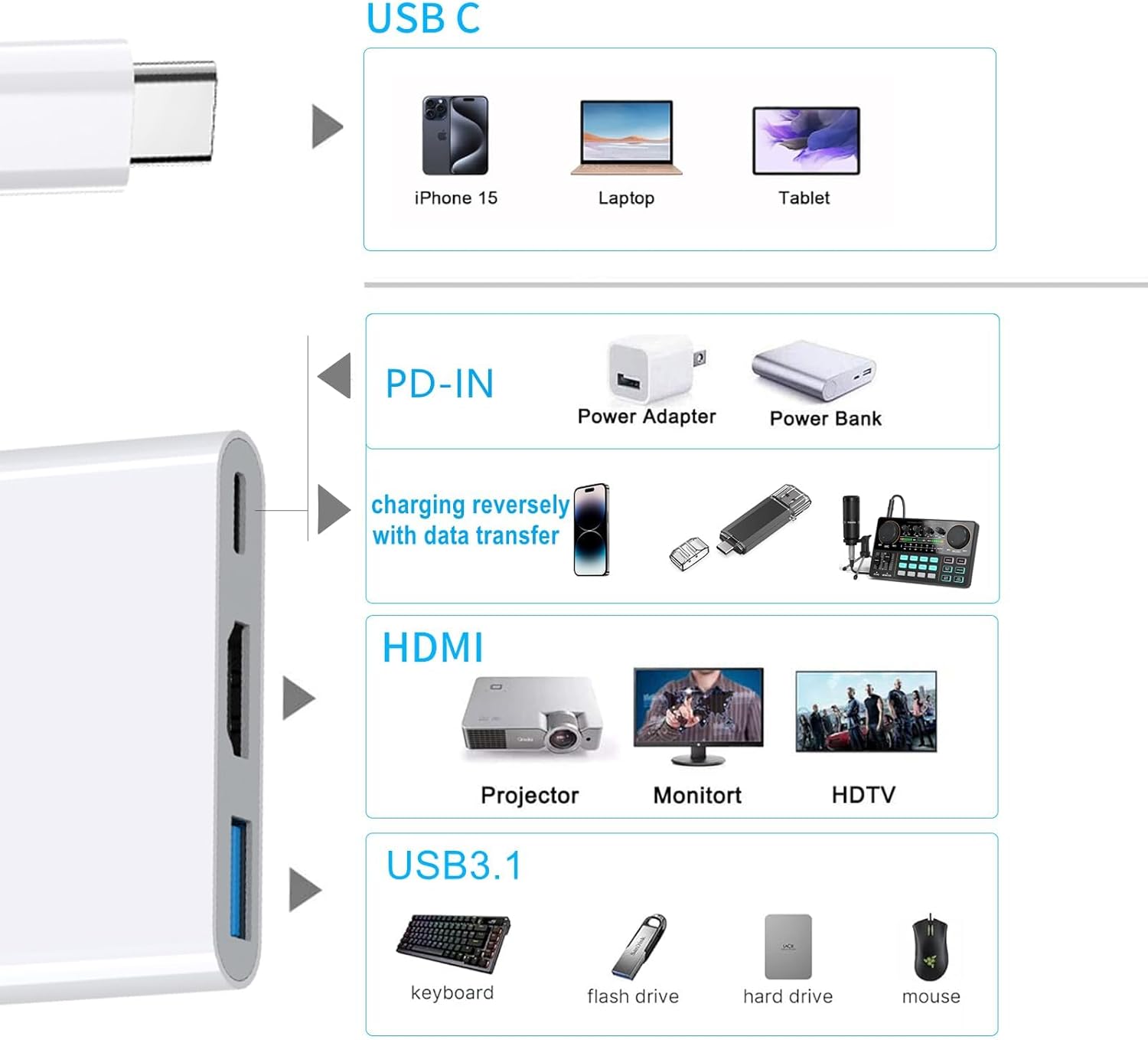 - Color : white【3in1USB C to HDMI Adapter】