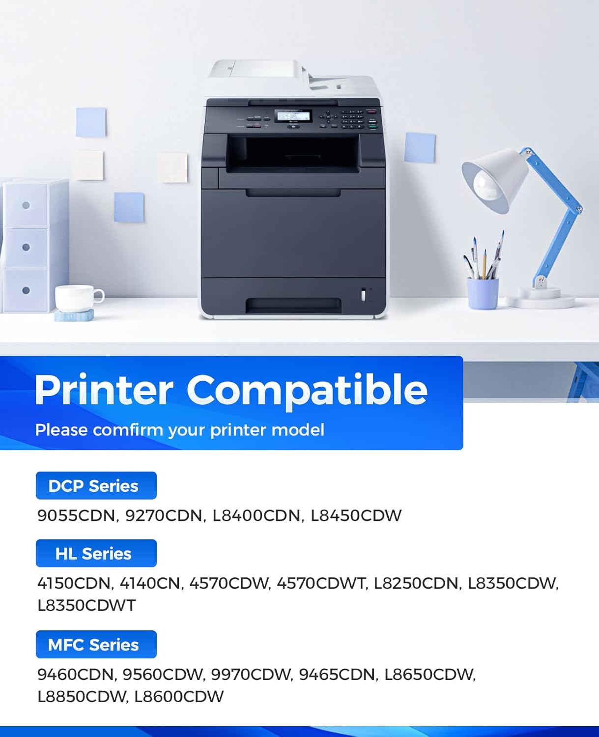 - Compatible Printers: Compatible with Brother DCP Printer Series:DCP-9055CDN DCP-9270CDN DCP-L8400CDN DCP-L8450CDW, HL Series:HL-4150CDN HL-4140CN HL-4570CDW HL-4570CDWT HL-L8250CDN HL-L8350CDW HL-L8350CDWT, MFC Series:MFC-9460CDN MFC-9560CDW MFC-9970CDW MFC-9465CDN MFC-L8650CDW MFC-L8850CDW MFC-L8600CDW Printers and works with TN336 TN-336 Toner Cartridges.