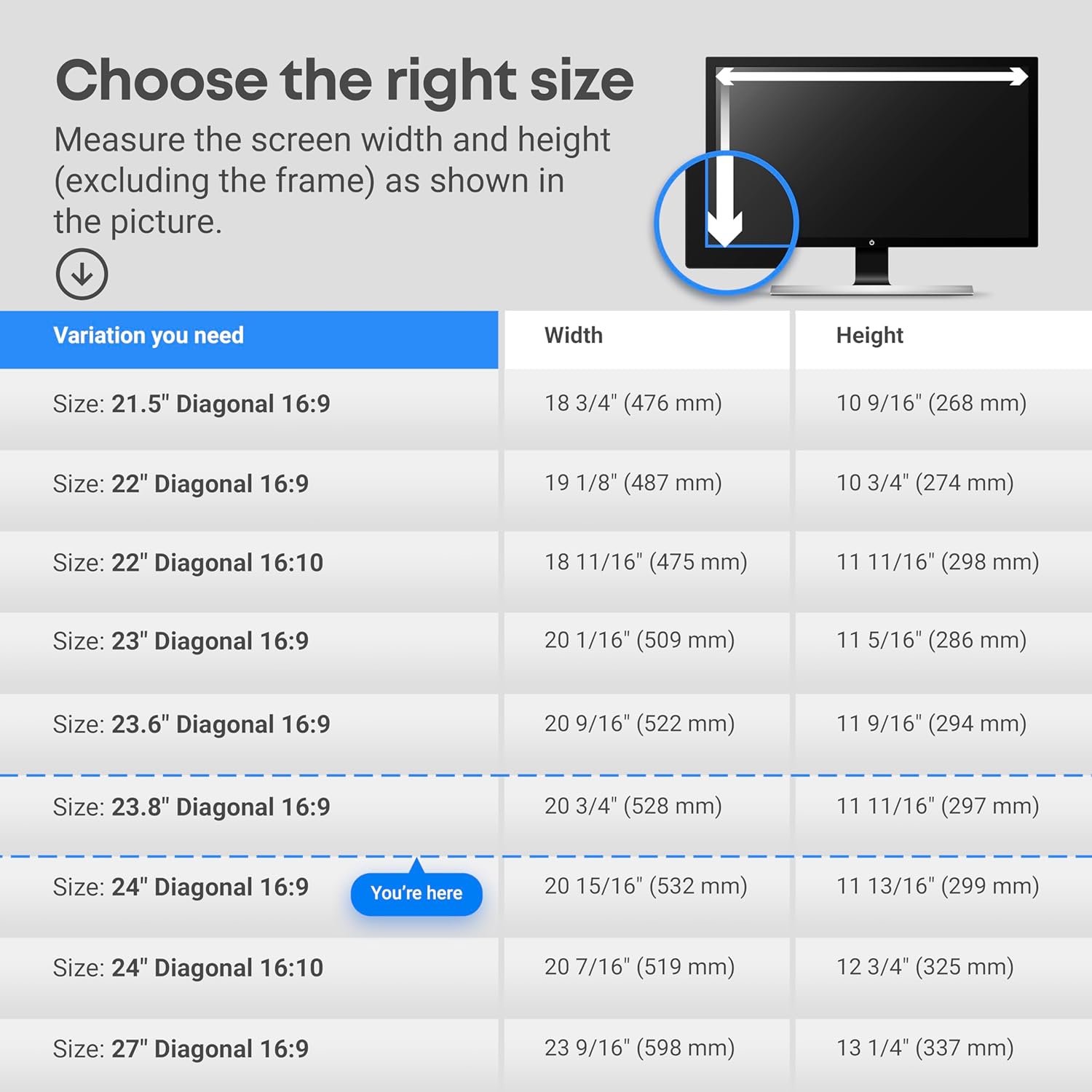23.8 inch Blue Light Blocking Screen Protector Panel for 16:9 Widescreen Computer Monitor and Laptop - PC Anti-UV Eye Protection Filter Film - Anti-Scratch Diagonal Frame Shield [2 Pack]