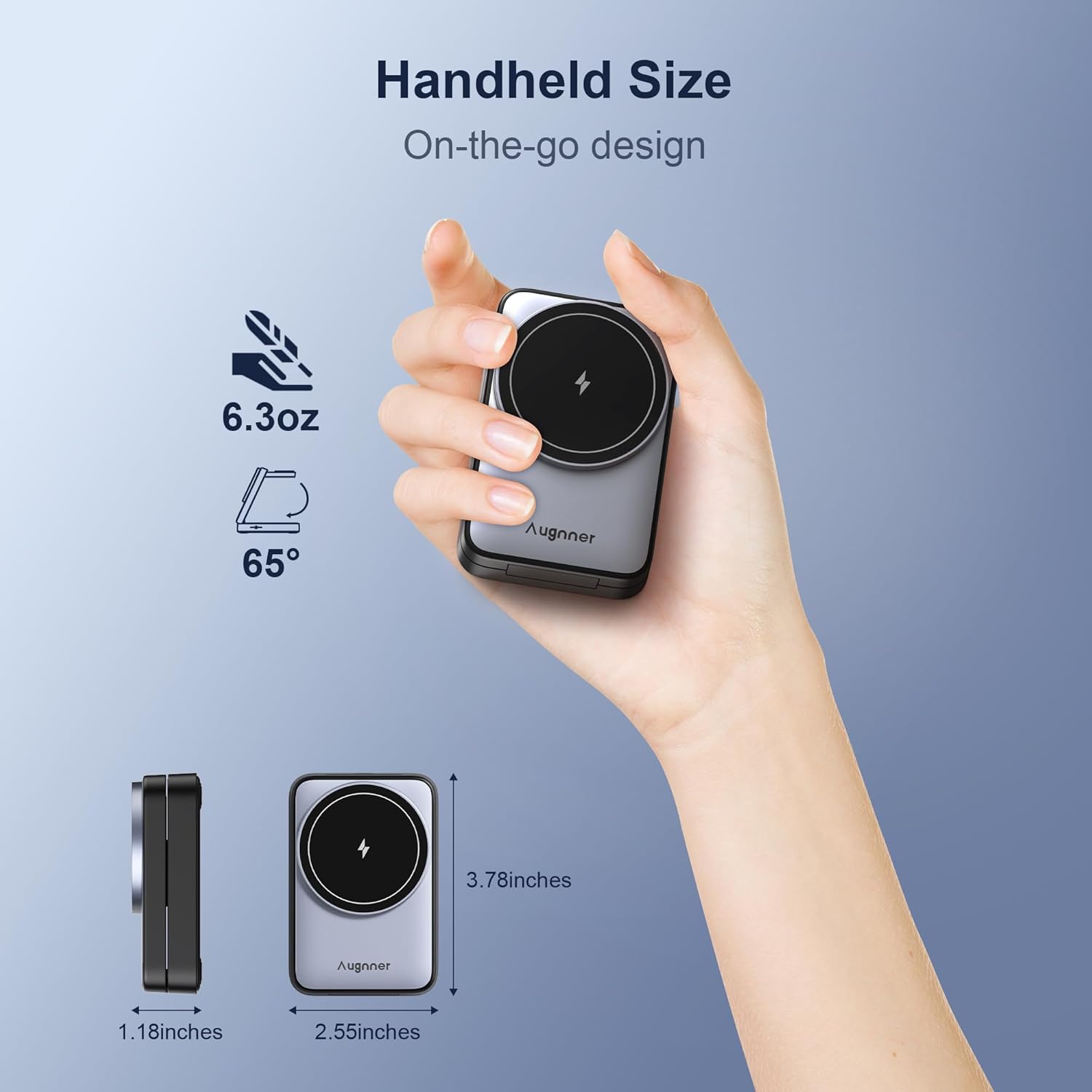 - 【Compact and Portable】Only 3.78*2.56*1.18in, 0.63oz 3-in-1 cube travel charger can charging your multiple apple device no more tangled wires or clumsy connectors. It's the must-have for your desk, nightstand, also a perfect accessory for your travel. The portable charger with a 0-65° foldable stand to adjust height and angle for a comfortable viewing angle. Magnetic wireless charging also allows your phone to be placed vertically or horizontally.