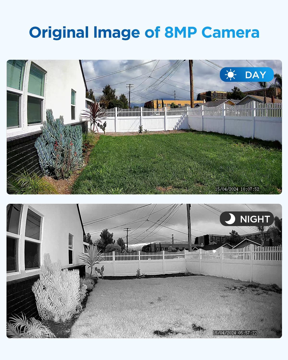 - 8MP Ultra-HD DISPLAY: These 8MP PoE IP cameras deliver detailed 3840 x 2160 images and up to 100ft night vision video monitoring. Enjoy crystal-clear video footage day and night.