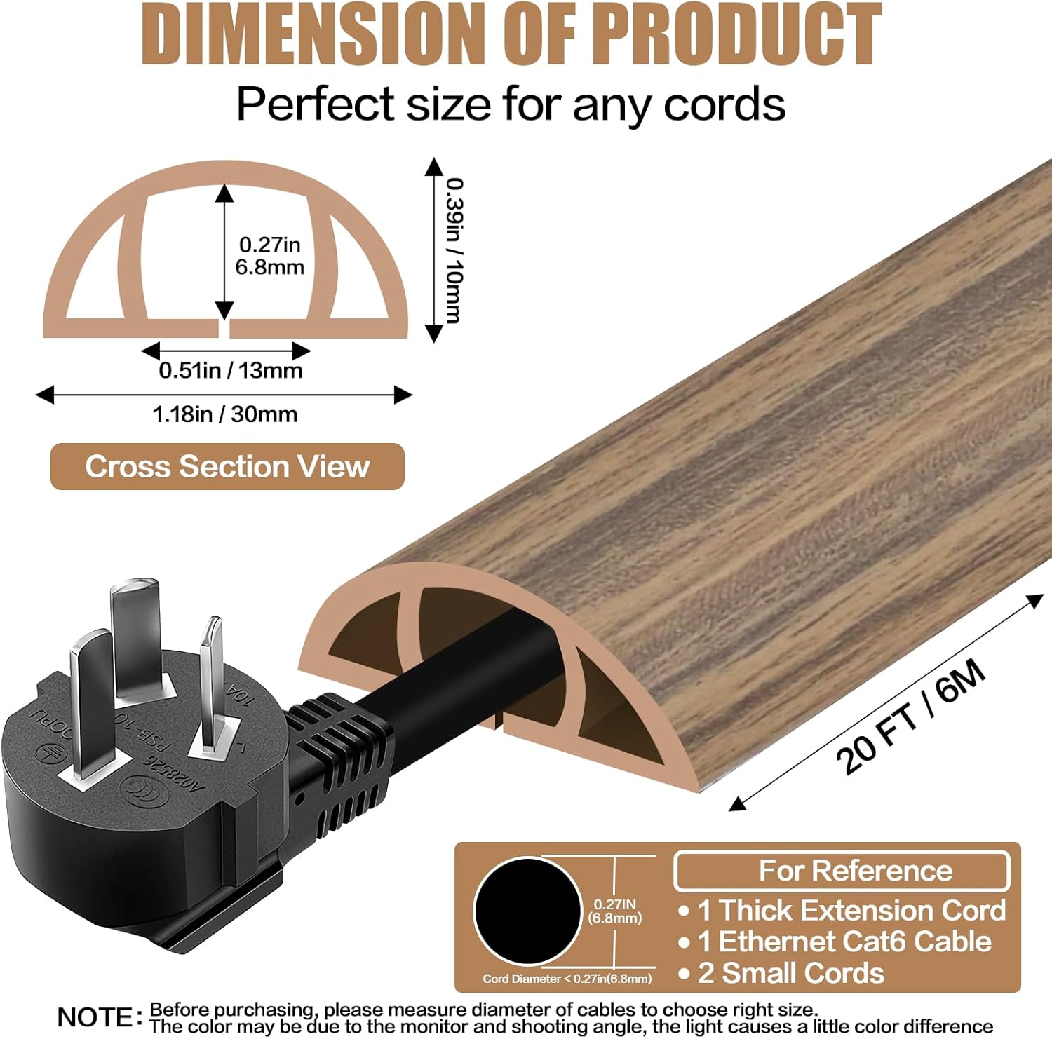 Floor Cord Cover Self Adhesive Cord Hider,20FT Cable Management, Extension Strip Protector for Wires, Prevent Cable Trips for Offices, Gyms, Exhibitions Cavity:0.39"(W) x 0.27"(H) Woodsmokedbrown