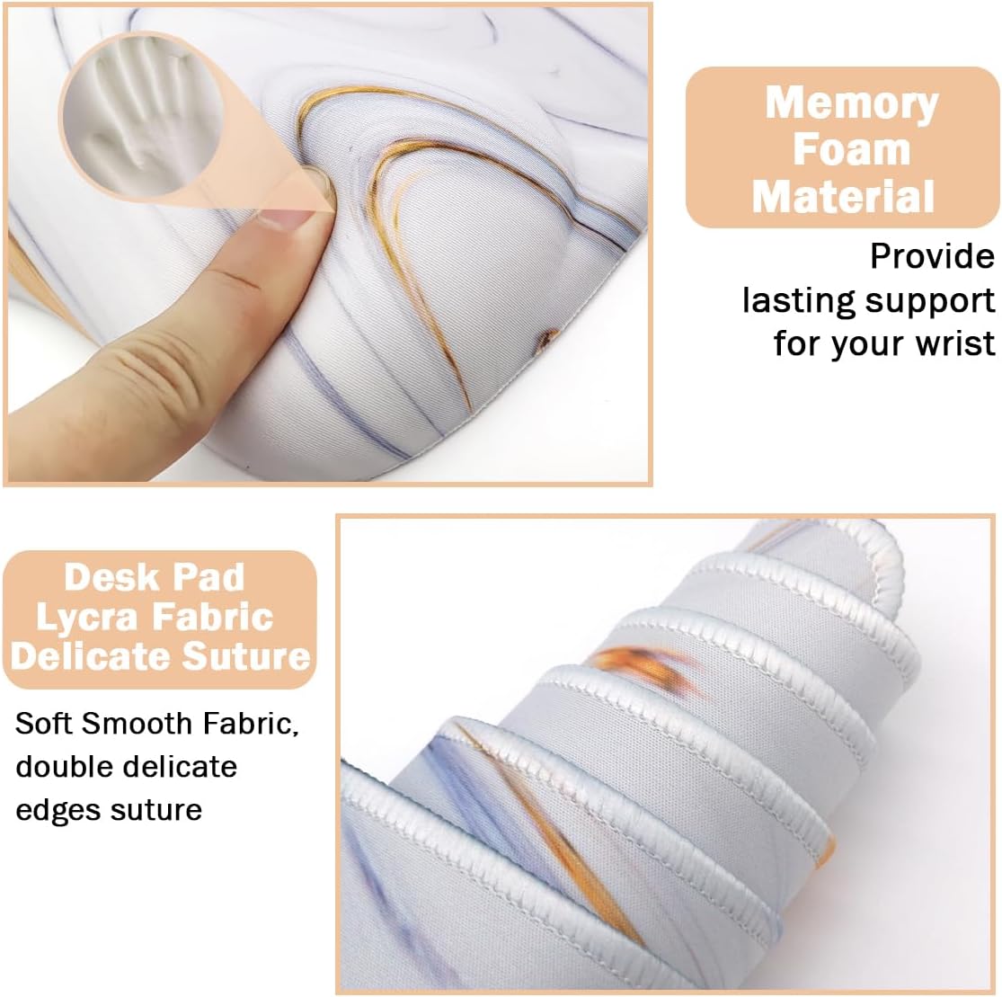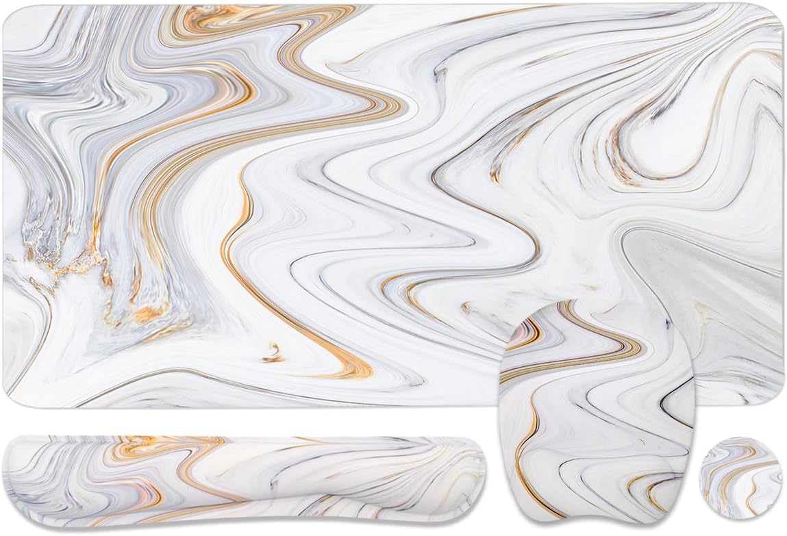 Keyboard Wrist Rest Large Mouse Pad Wrist Support for Computer, 4 in 1 Memory Foam Keyboard Pad Desk Mat Ergonomic Hand Rest Wrist Cushion for Home Office Gaming-White Marble