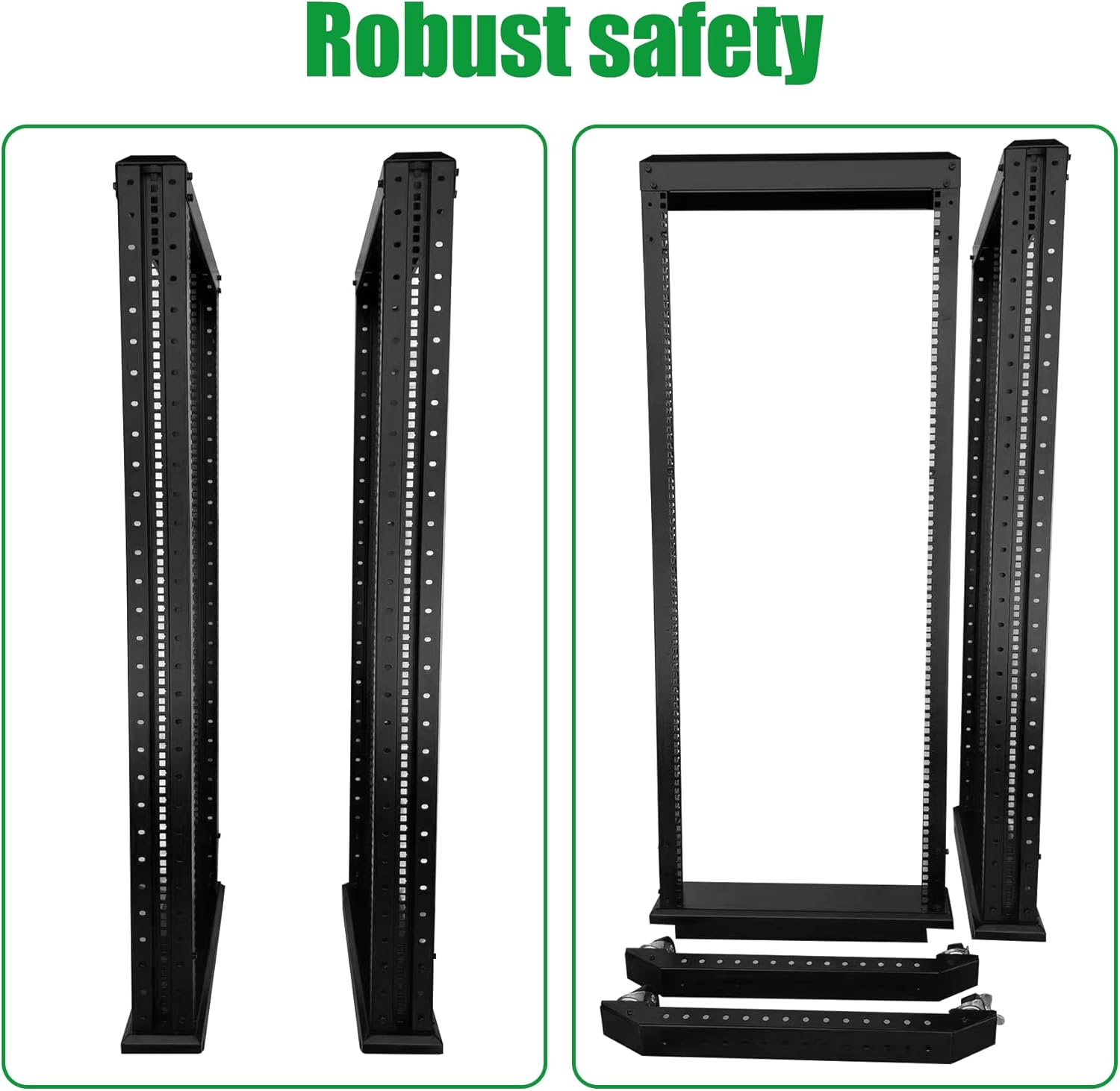 - Specifications:GLOBALRACK 4-post open frame server rack ,Network rack that complies with all 19-inch standard equipment.Installation depth 29.75-27.75in,Equipped with brake wheels,Compatible with various servers, switches, data, AV, other IT equipment.