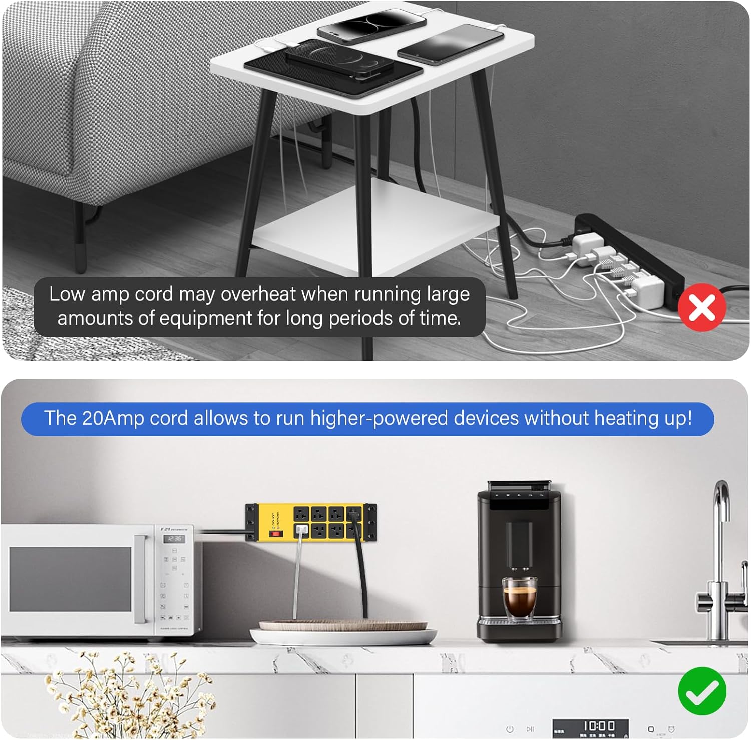 - Yellow Heavy duty power strip 20 amp with 8 outlets, 5-20R, 6-20R and come with standard 3 prong 5-15P plug. Wall mount design, can be applied to high power industrial equipment.