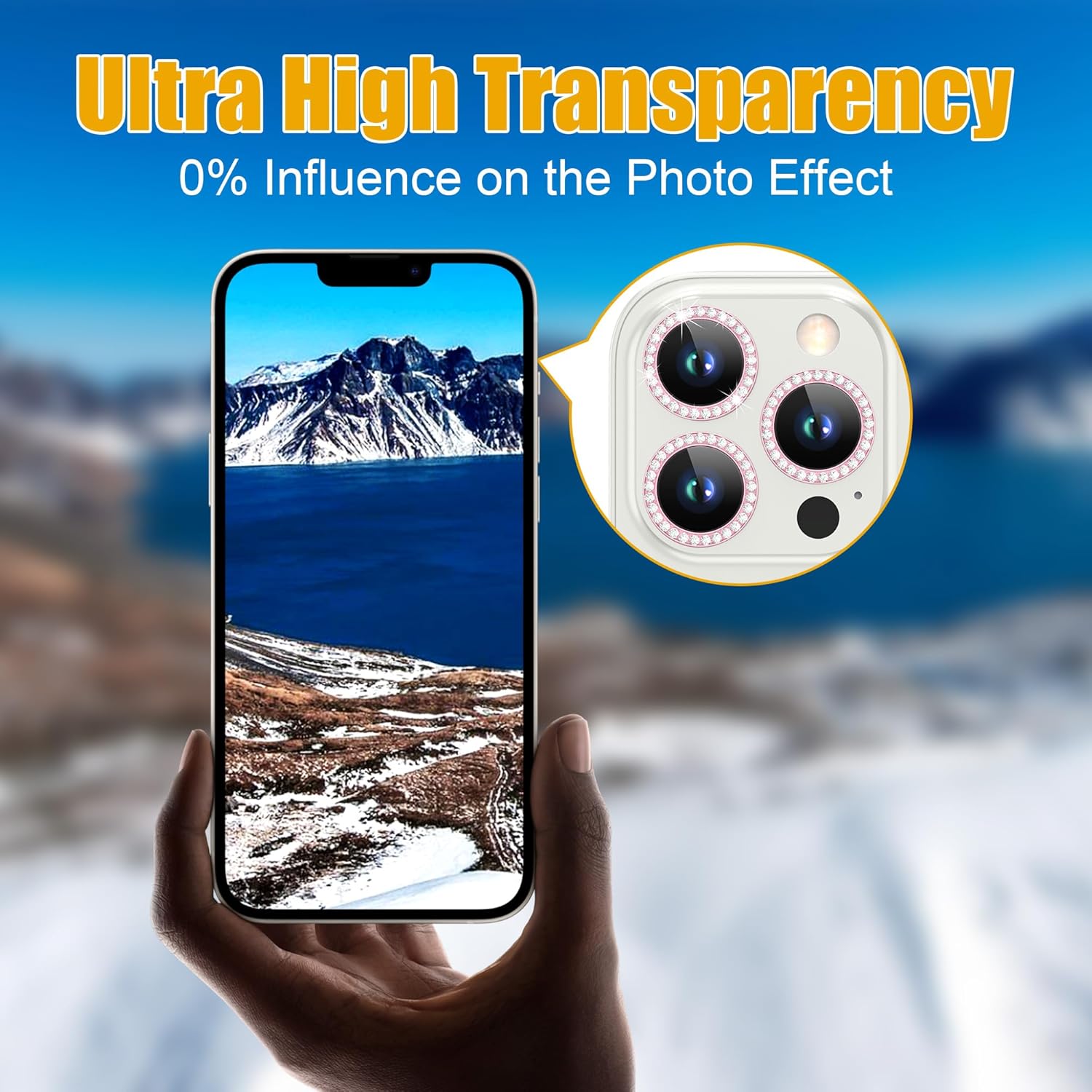 - ⭕[Two Bling Effects] There are 3 bling diamond rings and 3 bling glitter rings in the package. Free to match according to your own personal preferences. These rings glass are optical grade, protect your iPhone 13 Pro / 13 Pro Max camera lens from damage and scratches and has no effect on taking photos. Fully high transmittance sapphire glass with AR anti-reflection function: Camera anti-fall protection and Bling Bling Effect and Fully restored image quality.