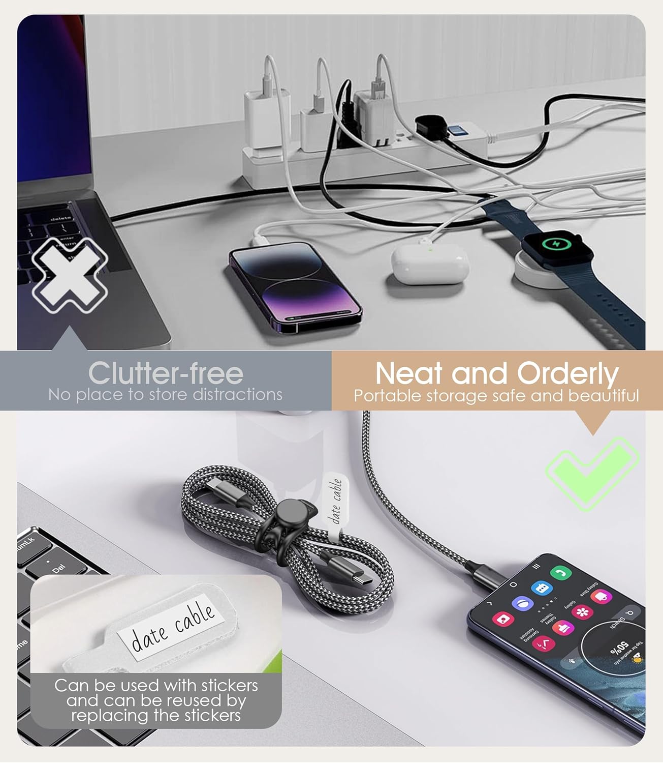 - 【Anti-lost Design & Reusable】Our silicone cable ties feature a locking design, making it easy to secure the cable strap to the cable to prevent it from falling off. And these cable labels can be used with stickers and can be reused by replacing the stickers