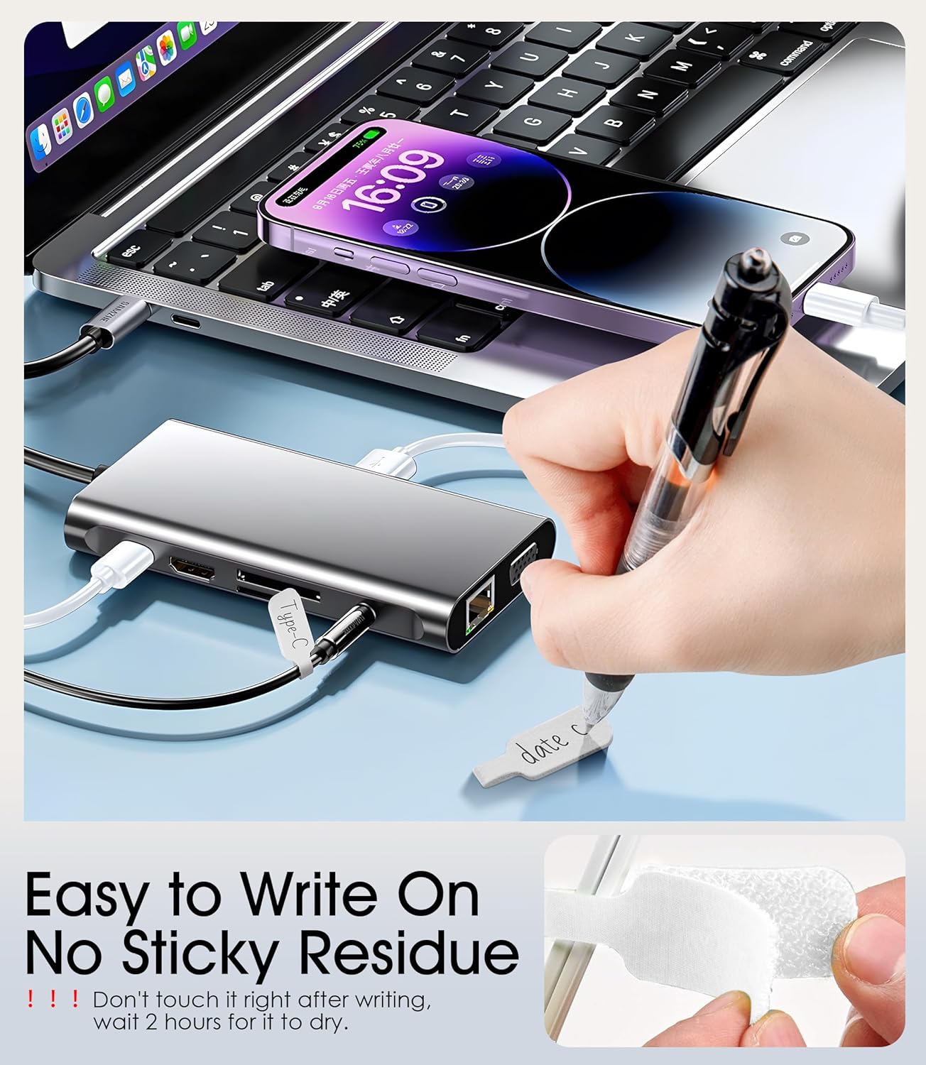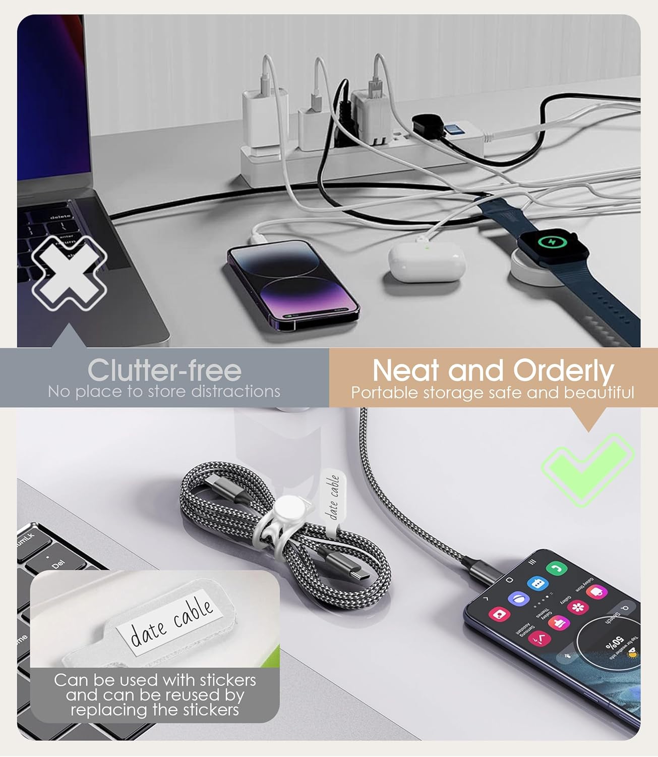 - 【Anti-lost Design & Reusable】Our silicone cable ties feature a locking design, making it easy to secure the cable strap to the cable to prevent it from falling off. And these cable labels can be used with stickers and can be reused by replacing the stickers