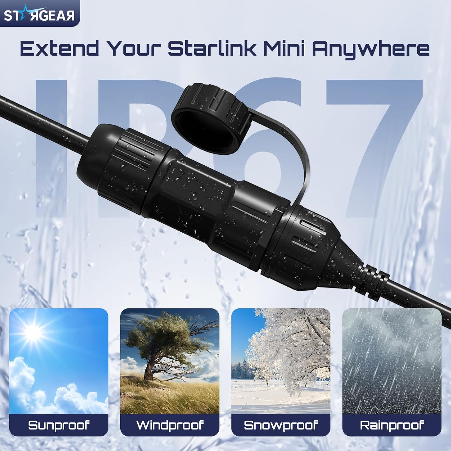 - Low Contact Resistance: STARGEAR Starlink mini ethernet cable with patented advanced soldering-type RJ45 connectors, engineered for all-weather, heavy-duty use, reduce 50% contact resistance. This Starlink cable to keep the Starlink gen3 (REV4) or MINI set up in optimal condition.