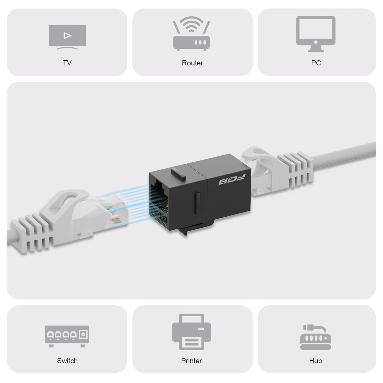 - EASY TO CONNECT: Standard CAT6A female to female keystone jack can be used connect two CAT6A/CAT6/CAT5E/CAT5 Ethernet network cables