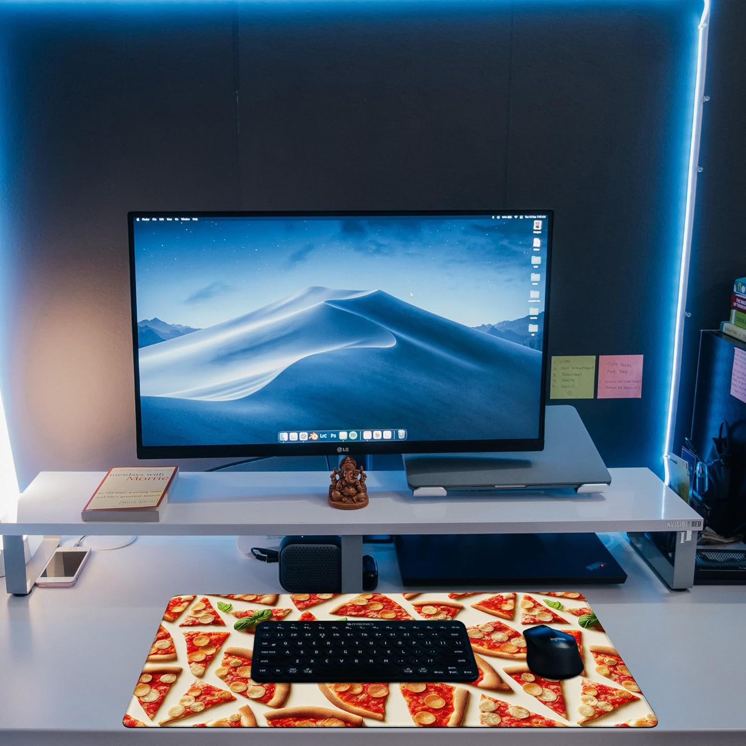 Desk Mat, Realistic Pizza Slices Desk Pad, Pizza Food Large Gaming Mouse Pad for Desk, 31.5"x15.7" Extended Big Computer Keyboard Mouse Pad with Non-Slip Base and Stitched Edge