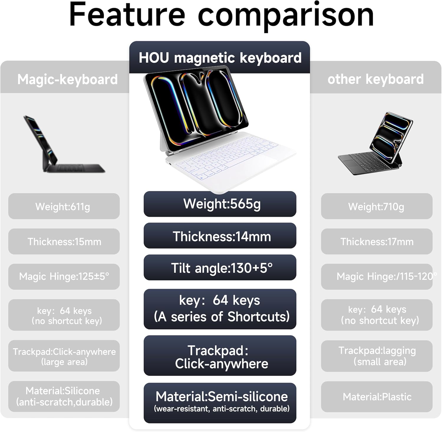 - 🔍 Perfect Compatibility:Exclusively for 11" iPad Pro M4 2024–Verify model from iPad setting>General>About>Tap the model number once to reveal the actual model identifier(e.g., “iPad Pro”)before purchase!⚠️Warning:Due to the magnet layout design of the iPad, it is only compatible with iPad Pro M4.