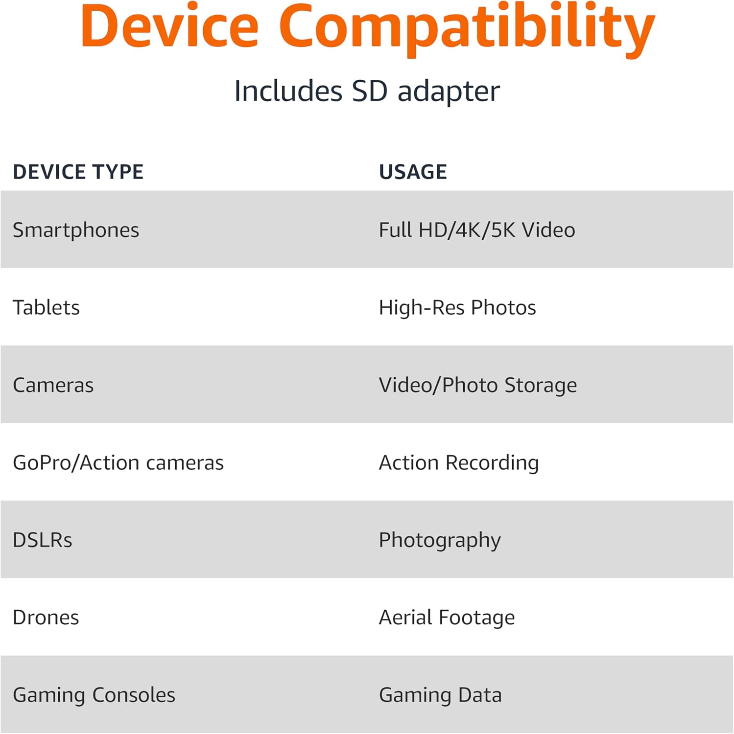 - 256B Micro SD Card compatible with smartphones, tablets, cameras, GoPro/action cameras, laptops, desktop computers, DSLRs, drones, gaming consoles and more. This Micro SD card is not compatible with the Nintendo Switch 2