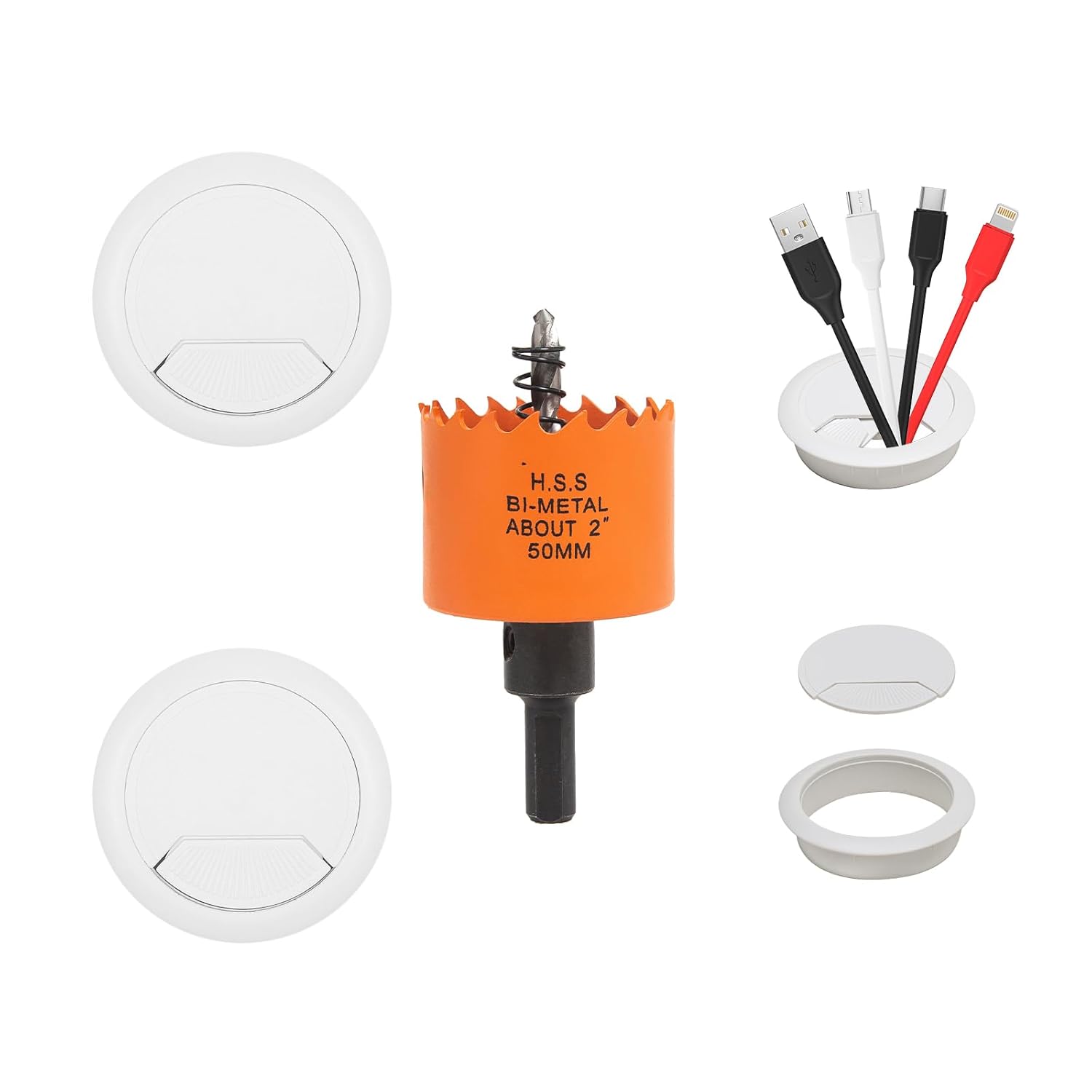 Desk Grommet 2 inch with Hole Saw, Desk Cord Hole Cover Grommet for Cables, 2 PCS, White