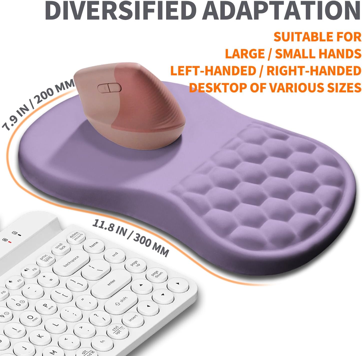 Ergonomic Joint Wrist Support Mouse Pad with Memory Foam Cushion Massage Bump, Carpal Tunnel Pain Relief Mousepad Slope Design for Wrist Rest, 11.8x7.9 in, Pale Purple